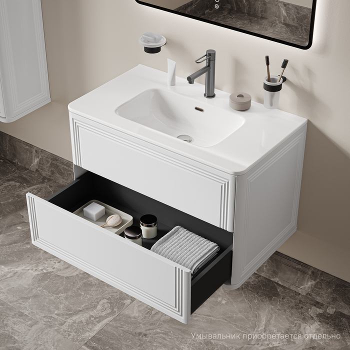 Вместительная подвесная тумба Oxford Neo с выдвижными ящиками в элегантном стиле нео-классика с изящной фрезеровкой на фасадах и торцах. Идеально дополнит современные и классические интерьеры и станет настоящим украшением ванной. При желании тумбу можно сделать напольной – ножки высотой 30 см продаются отдельно в трёх цветах (белый, чёрный и светлый бук). Умывальник приобретается отдельно; подойдёт умывальник IDDIS®, арт. 0108000i28. Материал фасадов и боковин – МДФ с покрытием белой матовой эмалью. Продумано для использования в помещениях с высокой влажностью и сохранит первоначальный вид мебели надолго (при должном уходе). Два ящика с шариковыми направляющими скрытого монтажа Hettich. Фурнитура рассчитана на 30 000 открываний – это более 10 лет исправной работы. Современный механизм открытия Push-to-Open – ящики открываются нажатием на фасад. В комплекте регулируемые навесы Hettich для удобного монтажа тумбы. Сифон приобретается отдельно. Гарантия на мебель IDDIS® – 3 года. (с) Авторский текст, август 2025 г.