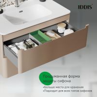Подвесная тумба Edifice в теплом оттенке капучино (умывальник приобретается отдельно) – воплощение современного минимализма. Мягкие линии корпуса в сочетании с удобными интегрированными ручками выглядят свежо и актуально. Смотрится аккуратно, легко и не усложняет процесс уборки в ванной благодаря подвесной конструкции. Рекомендуется использовать только с оригинальной моделью умывальника IDDIS® (арт. 0108000i28). • Надежные крепления рассчитаны на большой вес и позволяют равномерно распределять нагрузку. • Два выдвижных ящика закрываются плавно и бесшумно благодаря высококачественным скрытым направляющим с доводчиками немецкого производства. • Пластиковый ограничитель под сифон в верхнем ящике позволяет максимально эффективно использовать его пространство. • Фурнитура рассчитана на 30 000 открываний, что составляет более 10 лет исправной работы. Гарантия на мебель IDDIS® – 3 года. (с) Авторский текст, август 2023 г.