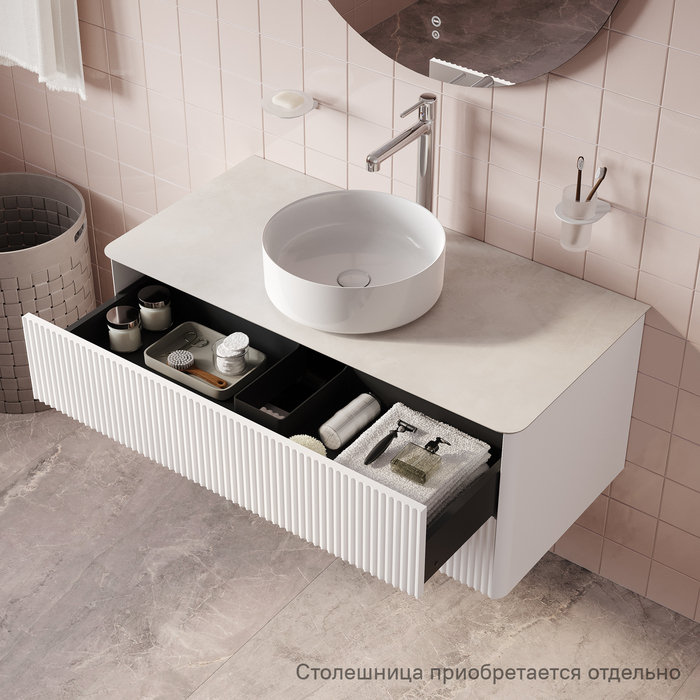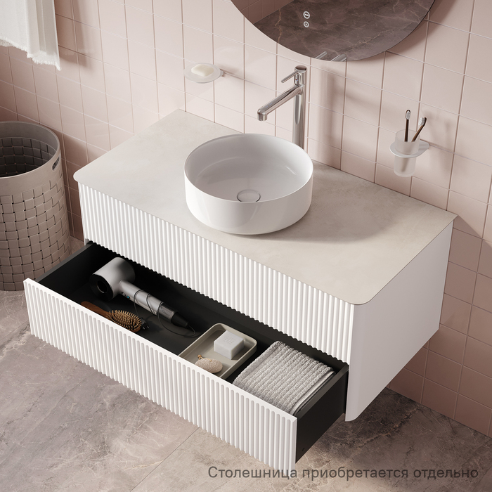 Вместительная лаконичная подвесная тумба для ванной комнаты Aiger с выдвижными ящиками под столешницу – красивый дизайн вне времени в классическом белом цвете с трендовой вертикальной фрезеровкой. Столешница приобретается отдельно (идеально подходит Optima Home от IDDIS®, арт. OPH10W0i89 в цвете «светло-серый бетон» с готовыми отверстиями под смеситель и сифон). • Влагостойкие фасады и боковины из МДФ с покрытием ПВХ-пленкой с приятным тактильным эффектом soft touch прослужат долго. • Интегрированные фасады имеют скругление – выглядят красиво и безопасны для детей. • Вместительные ящики с внутренней отделкой в практичном графитовом цвете – стильный внешний вид и много места для хранения. Эргономичная пластиковая защита сифона. • Бесшумные направляющие для ящиков и надежные подвесы Hettich – высокое качество и беззаботная эксплуатация долгие годы. • Ящики мягко открываются за счет механизма Push-to-Open – удобные и легкие в повседневной эксплуатации. Открываются нажатием на фасад. • Сифон приобретается отдельно. Гарантия на мебель IDDIS® – 3 года. (с) Авторский текст, октябрь 2024 г.