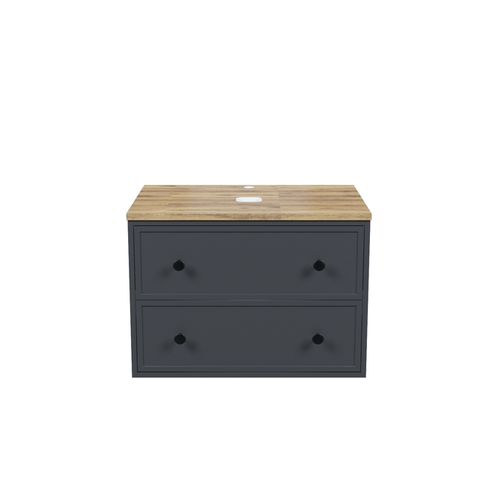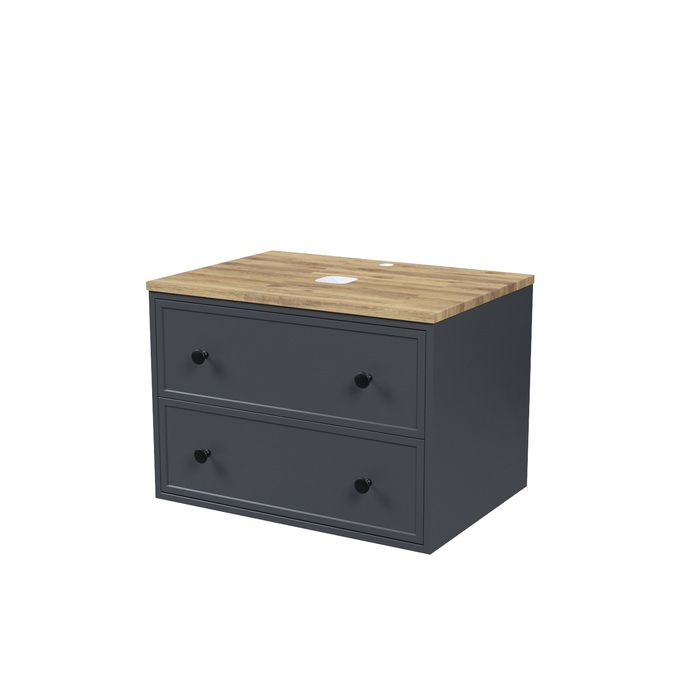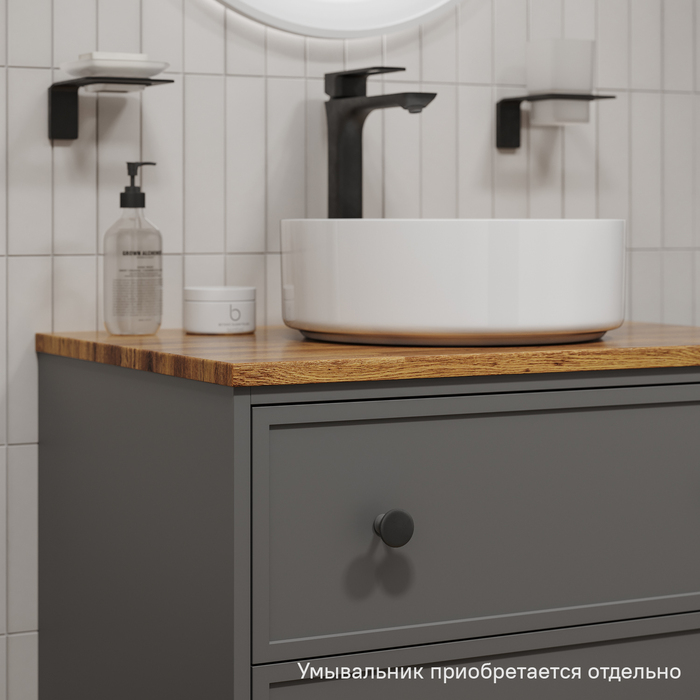 Компактная подвесная тумба Torr трендового темно-серого цвета со столешницей из клееного натурального дуба. Сочетает в себе узнаваемый стиль и практичность популярного скандинавского дизайна. Ее четкие формы, теплый цвет дерева, фасады с декоративной филенкой, круглые ручки смотрятся гармонично и впишутся в любой современный интерьер. Подойдет любой накладной умывальник, покупается отдельно. • Два просторных выдвижных ящика закрываются плавно и бесшумно благодаря высококачественным скрытым направляющим с доводчиками Hettich. Внутри ящики графитового цвета – стильно и практично. • Покрытие качественной влагостойкой пленкой, разработанной для использования в помещениях с высокой влажностью, сохранит первоначальный вид мебели надолго (при должном уходе). • Надежная фурнитура Hettich рассчитана на 30 000 открываний – это более 10 лет исправной работы. Гарантия на мебель IDDIS® – 3 года. (с) Авторский текст, сентябрь 2023 г.