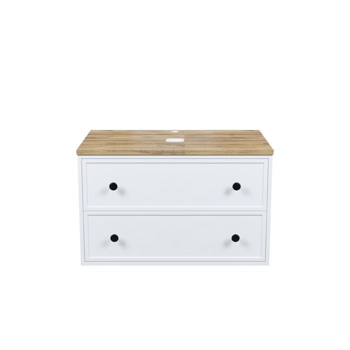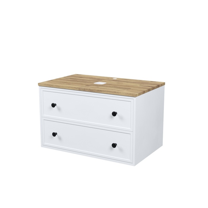 Вместительная подвесная тумба Torr классического молочно-белого цвета со столешницей из клееного натурального дуба. Сочетает в себе узнаваемый стиль и практичность популярного скандинавского дизайна. Ее четкие формы, теплый цвет дерева, фасады с декоративной филенкой, круглые ручки смотрятся гармонично и впишутся в любой современный интерьер. Подойдет любой накладной умывальник, покупается отдельно. • Два просторных выдвижных ящика закрываются плавно и бесшумно благодаря высококачественным скрытым направляющим с доводчиками Hettich. Внутри ящики графитового цвета – стильно и практично. • Многослойное покрытие матовой эмалью, предназначенной для использования в помещениях с высокой влажностью, позволит сохранить первоначальный вид мебели надолго (при должном уходе). • Надежная фурнитура Hettich рассчитана на 30 000 открываний – это более 10 лет исправной работы. Гарантия на мебель IDDIS® – 3 года. (с) Авторский текст, сентябрь 2023 г.