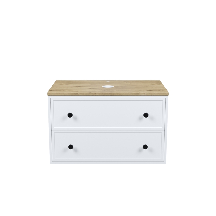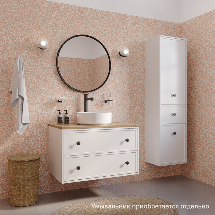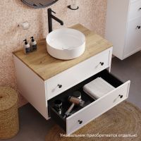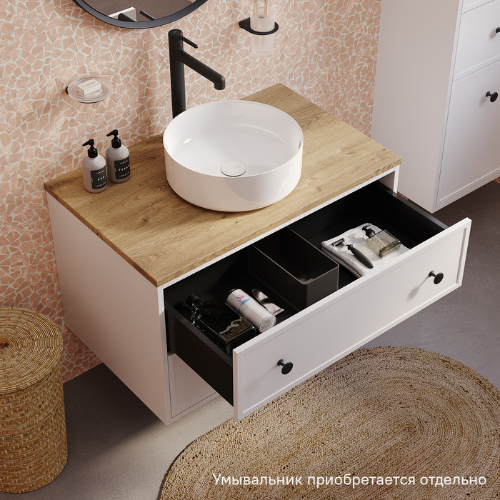 Вместительная подвесная тумба Torr классического молочно-белого цвета со столешницей из МДФ в оттенке дуба верона. Сочетает в себе узнаваемый стиль и практичность популярного скандинавского дизайна. Ее четкие формы, теплый цвет столешницы, фасады с декоративной филенкой, круглые ручки смотрятся гармонично и впишутся в любой современный интерьер. Подойдет любой накладной умывальник, покупается отдельно. • Два просторных выдвижных ящика закрываются плавно и бесшумно благодаря высококачественным скрытым направляющим с доводчиками Hettich. Внутри ящики графитового цвета – стильно и практично. • Многослойное покрытие матовой эмалью, предназначенной для использования в помещениях с высокой влажностью, позволит сохранить первоначальный вид мебели надолго (при должном уходе). • Надежная фурнитура Hettich рассчитана на 30 000 открываний – это более 10 лет исправной работы. Гарантия на мебель IDDIS® – 3 года. (с) Авторский текст, декабрь 2023 г.