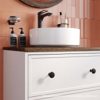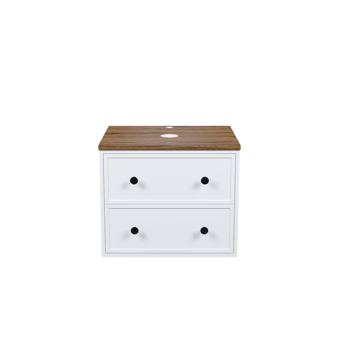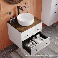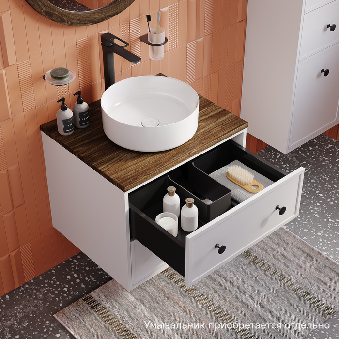 Компактная подвесная тумба Torr классического молочно-белого цвета со столешницей из МДФ в оттенке ореха макадамия. Сочетает в себе узнаваемый стиль и практичность популярного скандинавского дизайна. Ее четкие формы, теплый цвет дерева, фасады с декоративной филенкой, круглые ручки смотрятся гармонично и впишутся в любой современный интерьер. Подойдет любой накладной умывальник, покупается отдельно. • Два просторных выдвижных ящика закрываются плавно и бесшумно благодаря высококачественным скрытым направляющим с доводчиками Hettich. Внутри ящики графитового цвета – стильно и практично. • Многослойное покрытие матовой эмалью, предназначенной для использования в помещениях с высокой влажностью, позволит сохранить первоначальный вид мебели надолго (при должном уходе). • Надежная фурнитура Hettich рассчитана на 30 000 открываний – это более 10 лет исправной работы. Гарантия на мебель IDDIS® – 3 года. (с) Авторский текст, декабрь 2023 г.