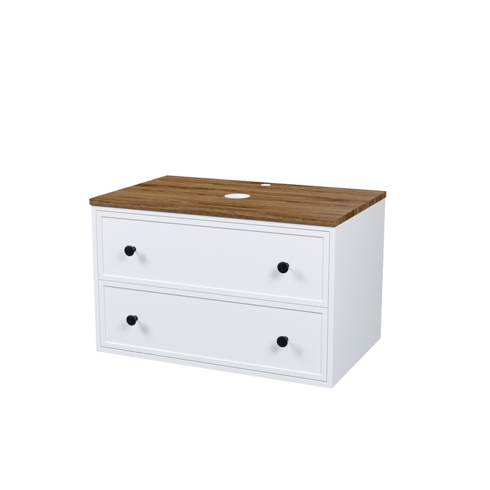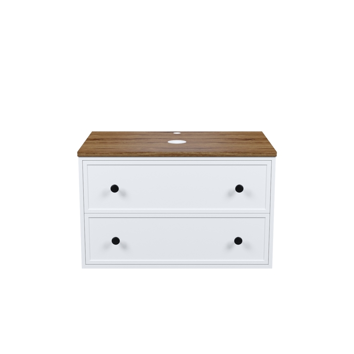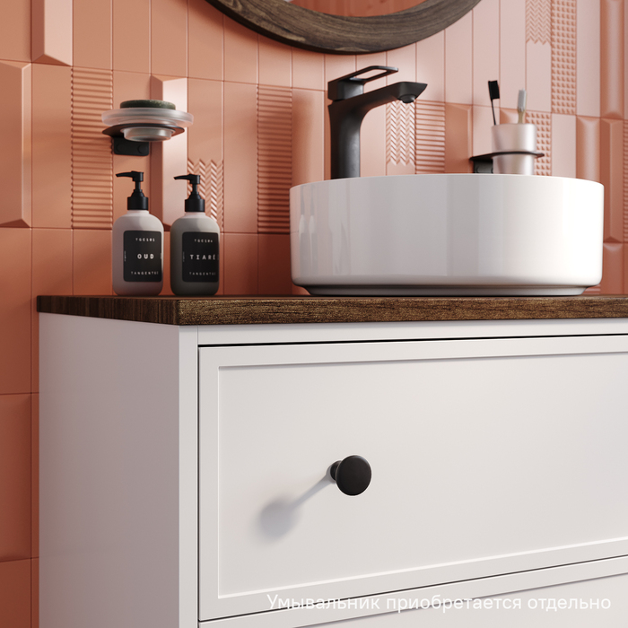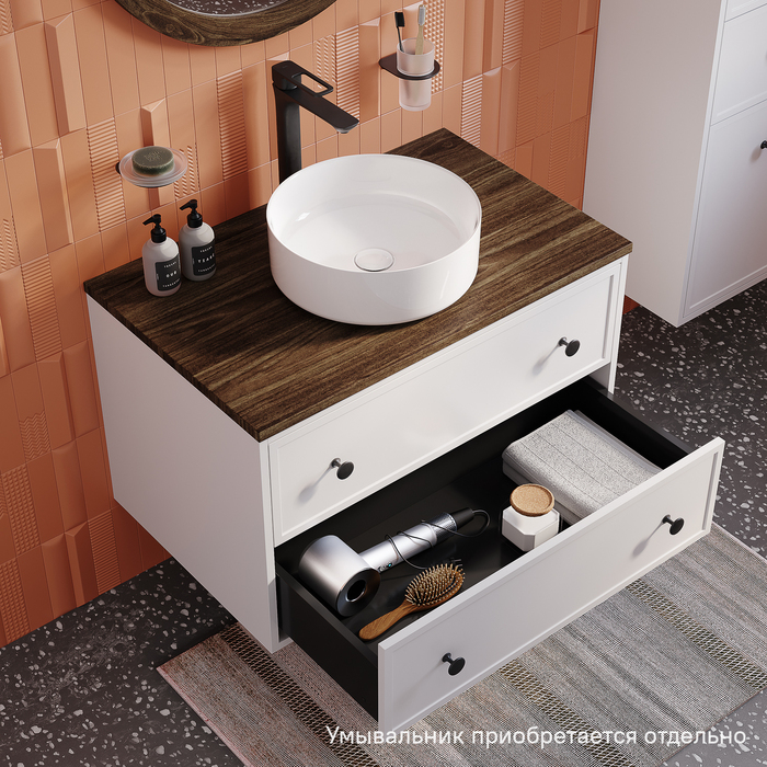 Вместительная подвесная тумба Torr классического молочно-белого цвета со столешницей из МДФ в оттенке ореха макадамия. Сочетает в себе узнаваемый стиль и практичность популярного скандинавского дизайна. Ее четкие формы, теплый цвет столешницы, фасады с декоративной филенкой, круглые ручки смотрятся гармонично и впишутся в любой современный интерьер. Подойдет любой накладной умывальник, покупается отдельно. • Два просторных выдвижных ящика закрываются плавно и бесшумно благодаря высококачественным скрытым направляющим с доводчиками Hettich. Внутри ящики графитового цвета – стильно и практично. • Многослойное покрытие матовой эмалью, предназначенной для использования в помещениях с высокой влажностью, позволит сохранить первоначальный вид мебели надолго (при должном уходе). • Надежная фурнитура Hettich рассчитана на 30 000 открываний – это более 10 лет исправной работы. Гарантия на мебель IDDIS® – 3 года. (с) Авторский текст, декабрь 2023 г.