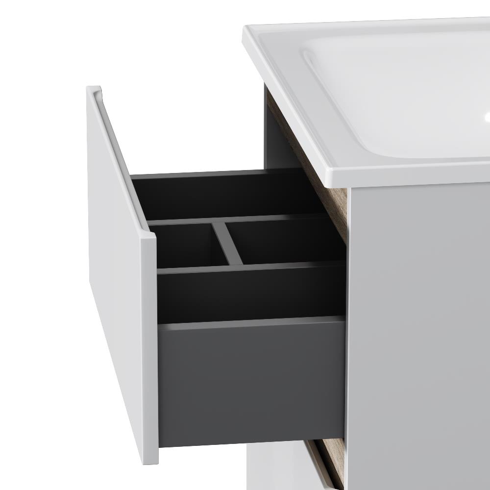 Напольная тумба бренда AM.PM коллекции X-Joy отличается эстетичным сочетанием цветов и фактур от дизайн-агентства Danelon Meroni: белые глянцевые фасады дополнены отделкой под светлое дерево. Функциональный органайзер в первом ящике позволит хранить необходимые косметические средства под рукой и в полном порядке. Внутреннее покрытие каждого ящика выполнено в современном цвете "антрацит" и имеет противоскользящее покрытие.​ Материал изделия - МДФ ЛДСП. Размер тумбы (Ш/Г/В): 575x445x830. Цвет тумбы - белый глянец. Экологически чистые и удивительно долговечные полиакриловые эмали – специальная технология покраски в 7 слоев превосходит технологию нанесения автоэмали у ведущих немецких марок и обеспечивает насыщенный цвет в течение всего срока службы (от 10 лет). Дополните тумбу раковиной коллекции X-Joy от европейского бюро Danelon Meroni (Великобритания/Италия). Чаша раковины создана с увеличенным объемом и элегантным бортиком по контуру. Раковина выполнена из белоснежного сантехнического фарфора. Размер раковины (Ш/Г/В): 590x450x172 мм. Цвет раковины - белый. Преимущества и функции: функционал хранения бытовой химии в тумбе с раковиной обеспечивает организованное и безопасное размещение моющих средств что способствует поддержанию порядка и упрощает доступ к необходимым материалам в процессе уборки. Оптимизация хранения вещей внутри ящиков. Грамотно расположенные скрытые коммуникации внутри тумбы. Устойчивая конструкция благодаря надежным ножкам. Бортик по контуру раковины и база под смеситель в виде острова предотвращают пролив воды за мебель. Материал раковины препятствует накоплению грязи и бактерий что облегчает чистку и поддержание гигиены. Гарантийные обязательства производителя: на раковину - 25 лет на тумбу - 3 года.