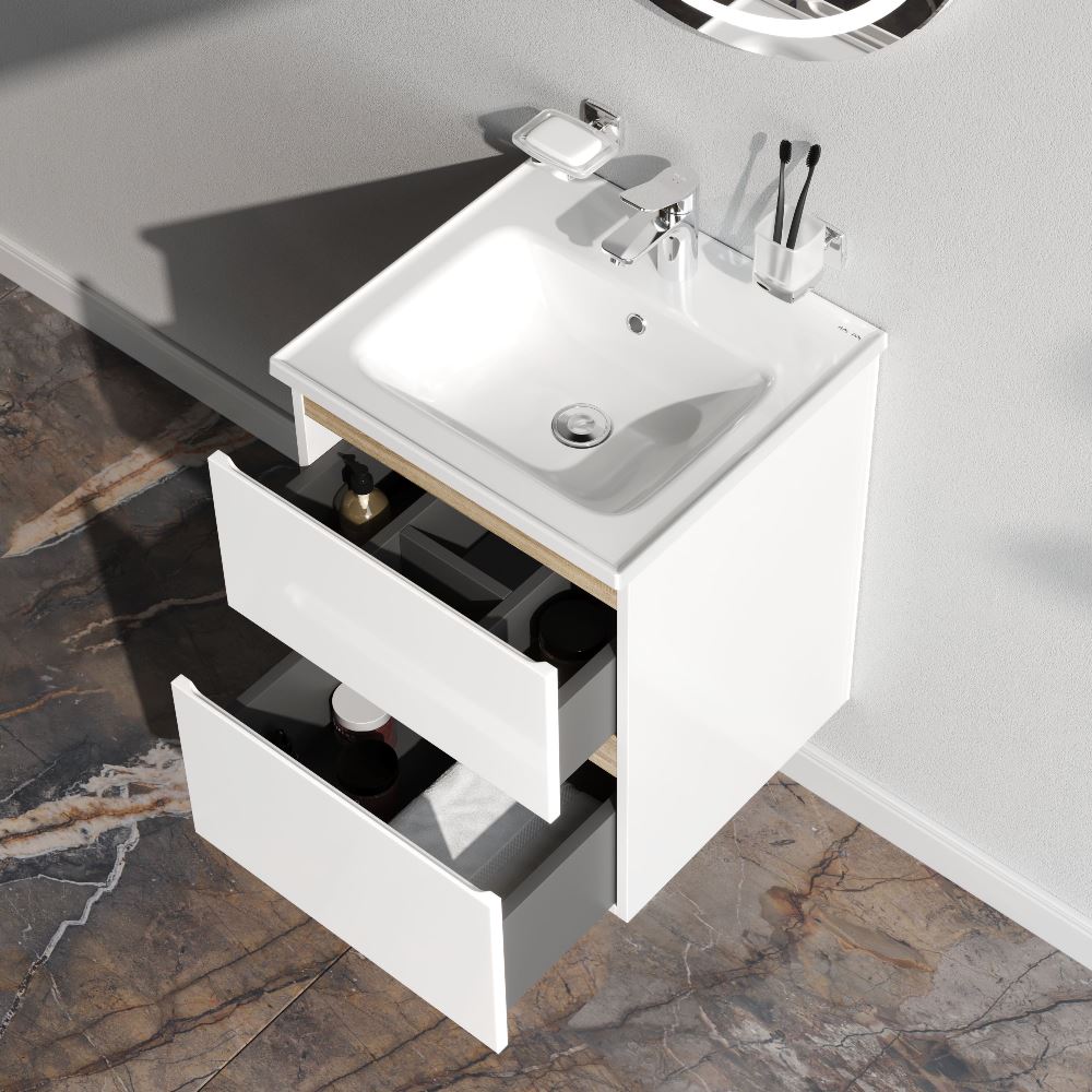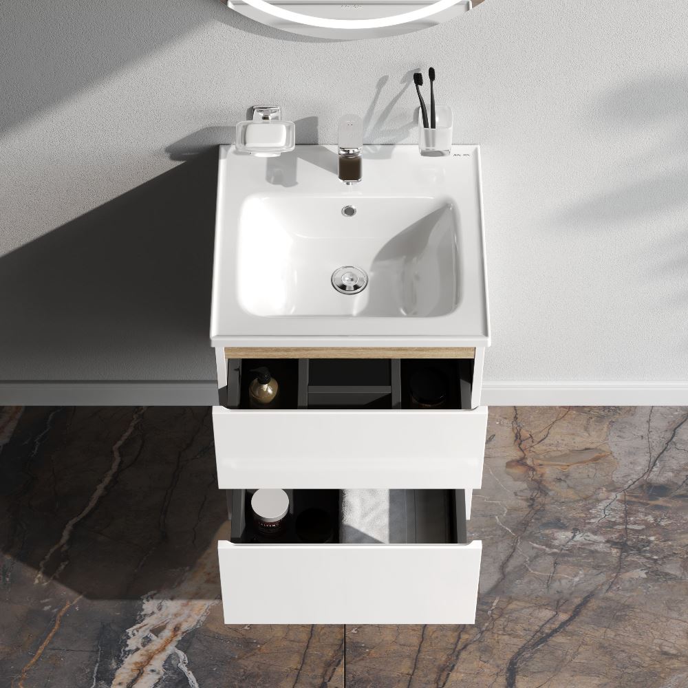 Тумба с раковиной AM.PM X-Joy, подвесная, 50 см, 2 ящика, белый глянец M85AFHX0502WG