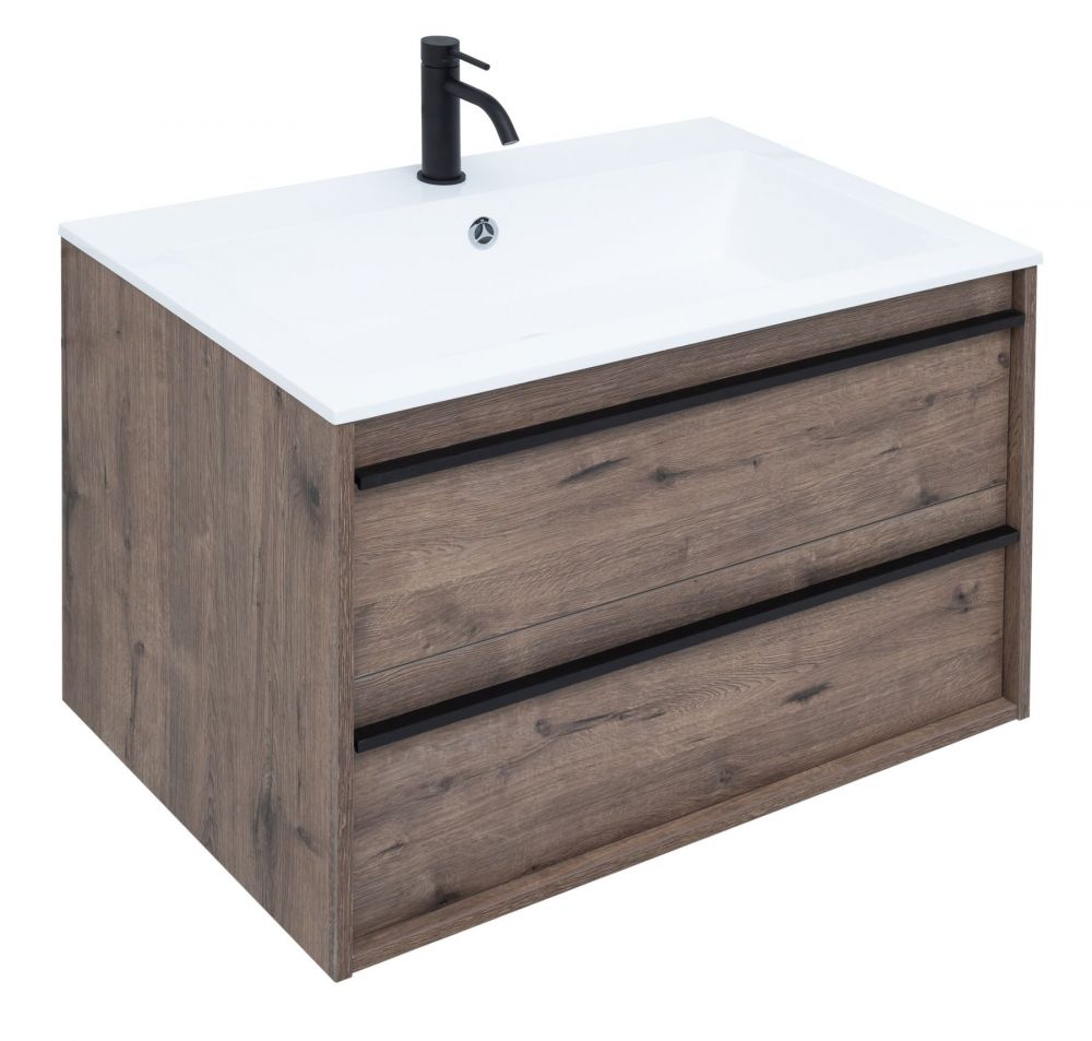 Тумба с раковиной Aquanet Lino 80 в цвете "дуб веллингтон" - яркий пример мебели в эко-стиле. Яркая, приятная глазу цветовая гамма плюс текстурная поверхность, максимально приближенная по тактильным ощущениям к натуральной древесной поверхности, является визитной карточкой коллекции. У нее удобная зона хранения: два выдвижных ящика, оборудованных доводчиками, словно утоплены внутрь корпуса. Тонкие изящные ручки во всю ширину ящиков. Именно они находятся в одной плоскости с боковыми стенками. Выглядит стильно. К тому же, безопасно, так как нет выступающих деталей. Кстати, ручки отечественного производства. Сделаны из алюминия, чтобы исключить возможность коррозии, по заказу Aquanet специально для этой коллекции. Сверху на них нанесено эмалевое покрытие. Корпус и фасады тумбы шириной 80 см – из влагостойкого ЛДСП. Сверху установлена раковина «Электра» из литьевого мрамора. У нее максимально глубокая и объемная чаша, но все внутренние детали скруглены, так что приведение ее в порядок не составит труда, так как грязь не будет скапливаться в уголках.