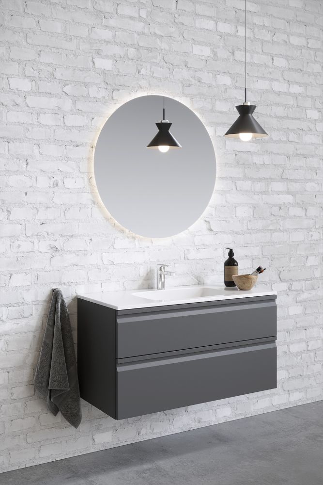 AQ77100-MG Комплект мебели: Тумба 100см ВЕГА с раковиной AQ4100-00, 2 ящика, цвет серый мат