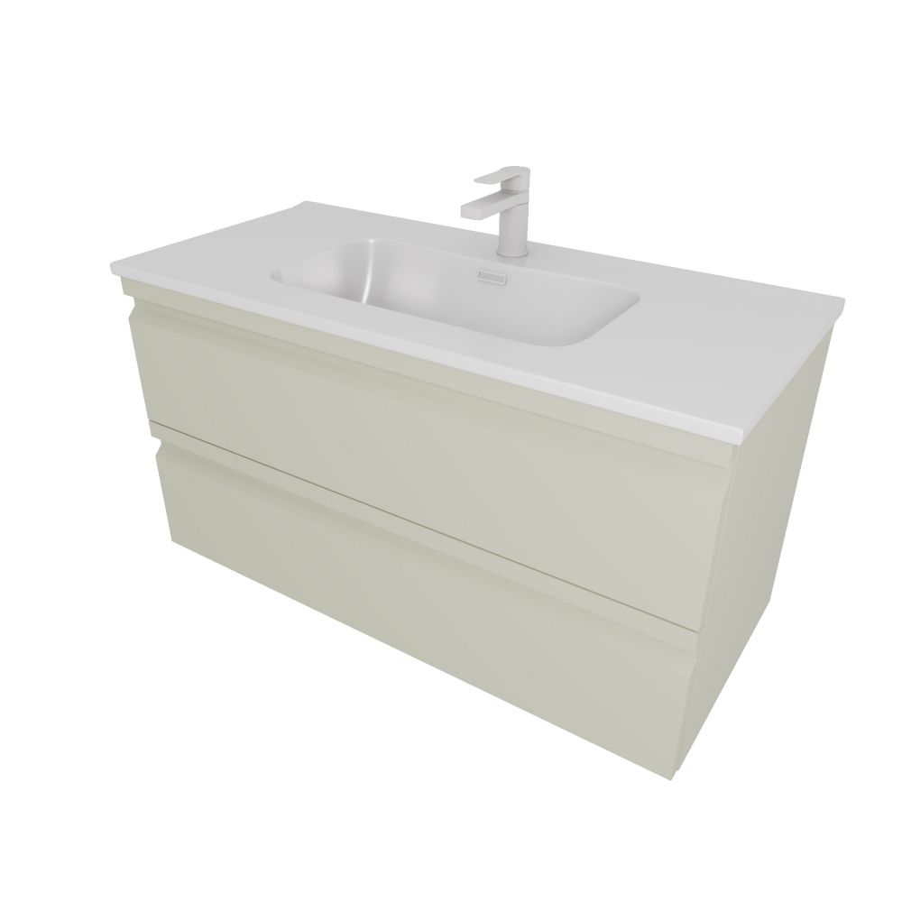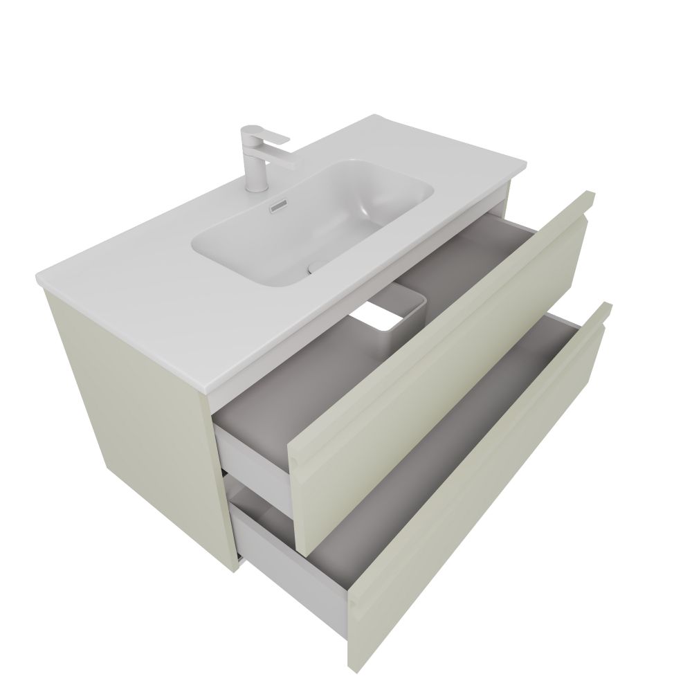 AQ77100-GS Комплект мебели: Тумба 100см ВЕГА с раковиной AQ4100-00, 2 ящика, цвет шалфей зеленый