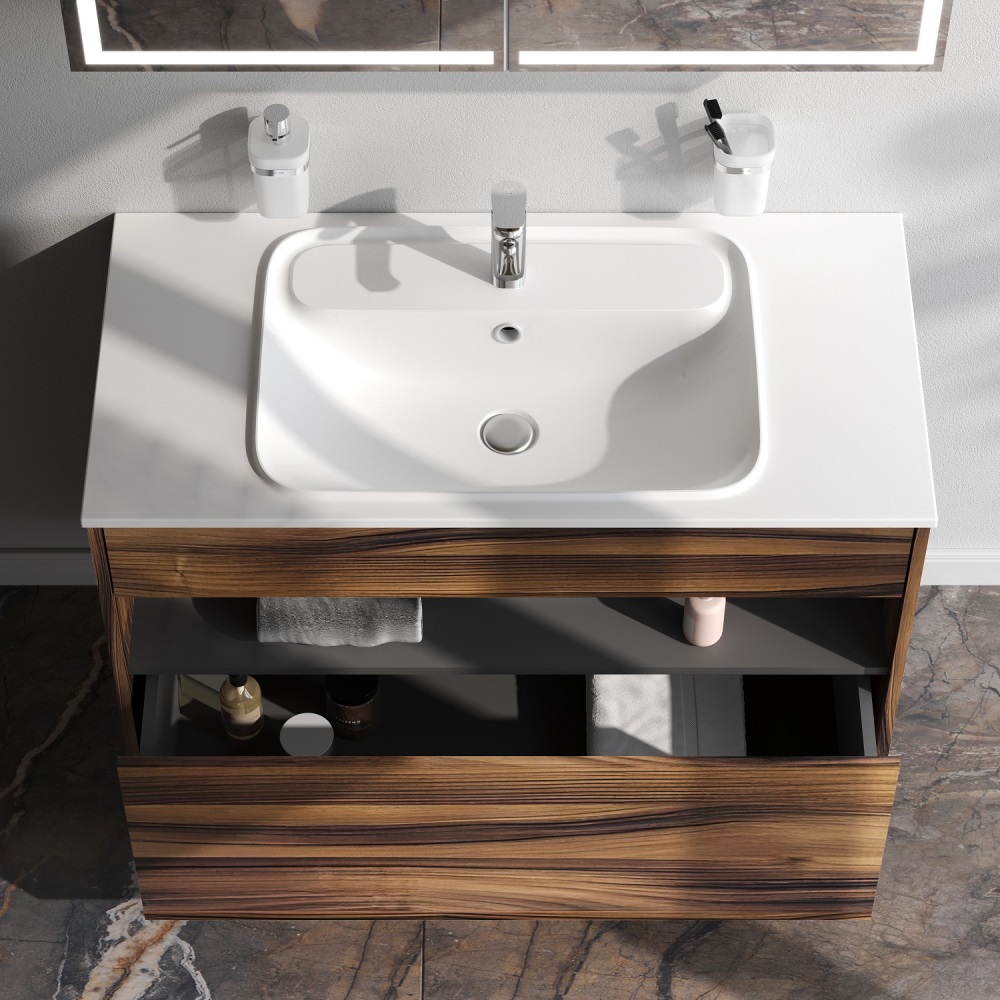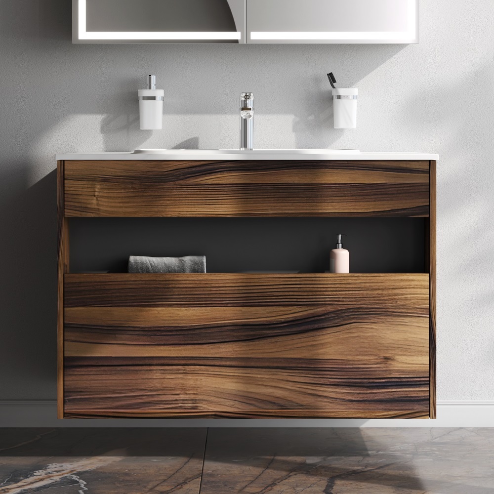 Тумба с умывальником AM.PM Func с нишей и 1 ящиком, 100 см, дуб крафт, универсальная, M8FFUX1001OF