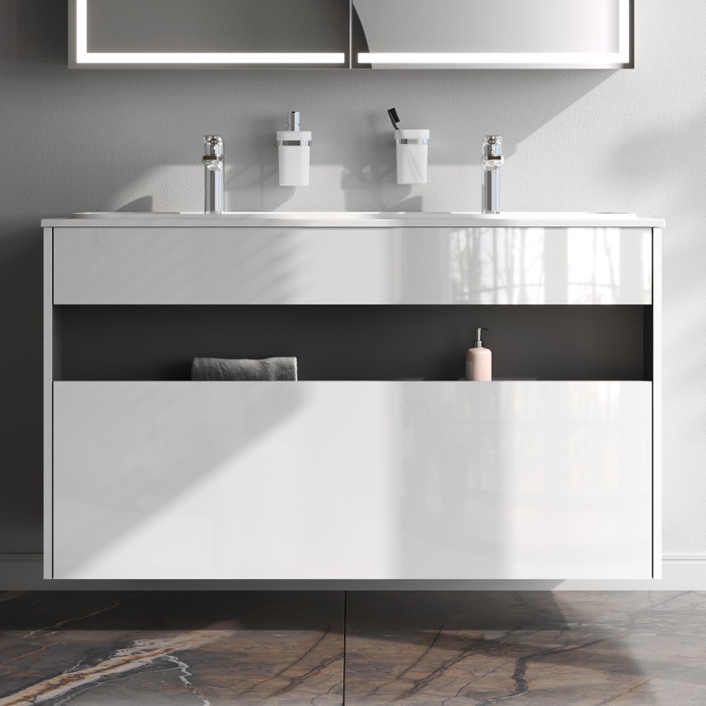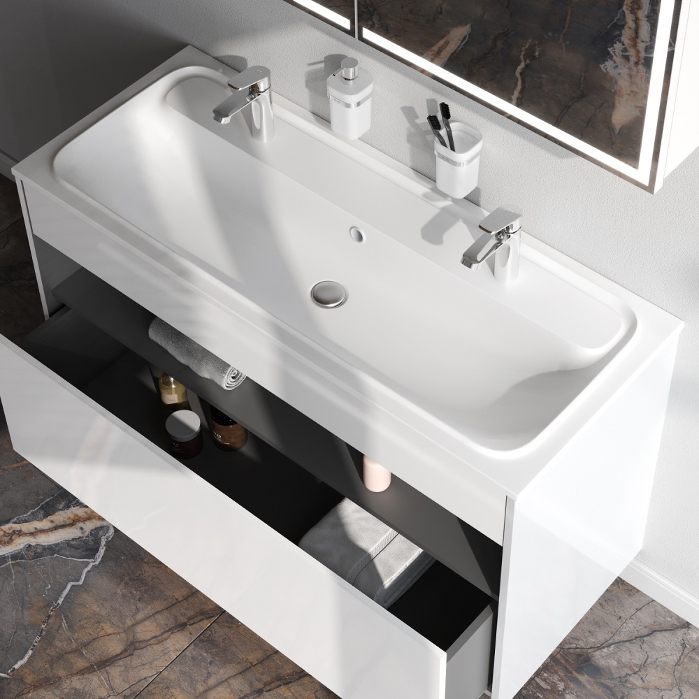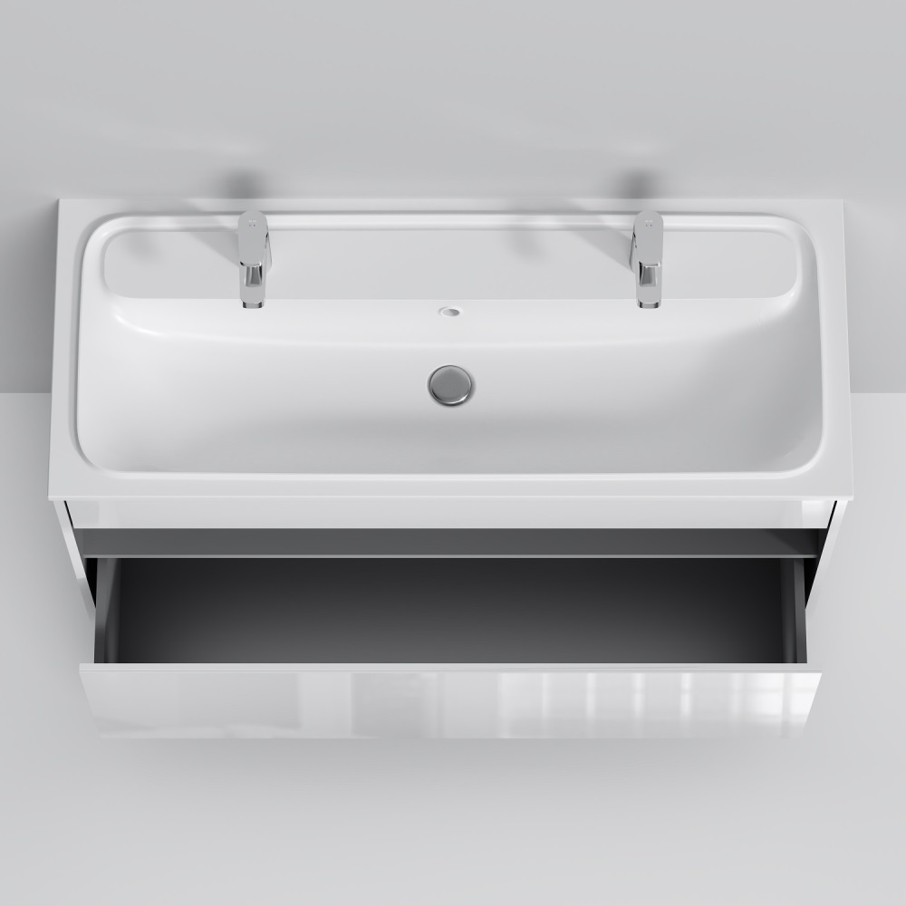 Тумба с умывальником AM.PM Func с нишей и 1 ящиком, 120 см, белый глянец, универсальная, M8FFUX1201WG