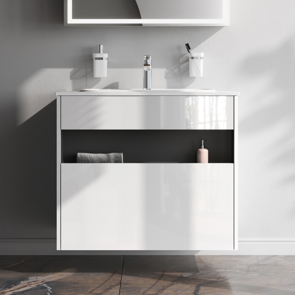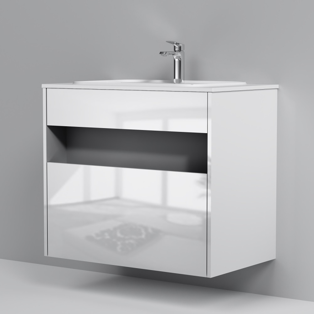 Тумба с умывальником AM.PM Func с нишей и 1 ящиком, 80 см, белый глянец, универсальная, M8FFUX0801WG