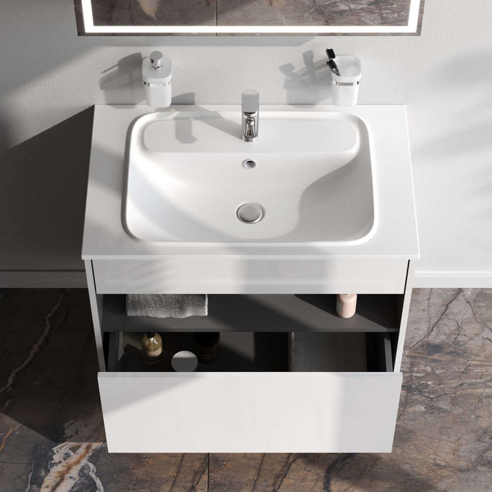Коллекция мебели Func отличается своей функциональностью вариативностью и мобильностью. Наши инженеры продумали и учли каждую деталь чтобы сделать взаимодействие с продуктами максимально простым и комфортным для всех членов семьи. Четыре дизайнерских сочетания от всемирно известной студии Design3 (Германия): белый глянец белый матовый дуб крафт черный матовый. Удобный выдвижной ящик и вместительная открытая ниша позволяют хранить все необходимые средства под рукой. Невероятно мягкое открытие и закрытие благодаря направляющим скрытого монтажа с системой soft close. Универсальный монтаж подвесной и напольный (комплект ножек приобретается отдельно). Экологически чистые и удивительно долговечные полиакриловые эмали – специальная технология покраски в 7 слоев превосходит технологию нанесения автоэмали у ведущих немецких марок и обеспечивает насыщенный цвет в течение всего срока службы (от 10 лет).