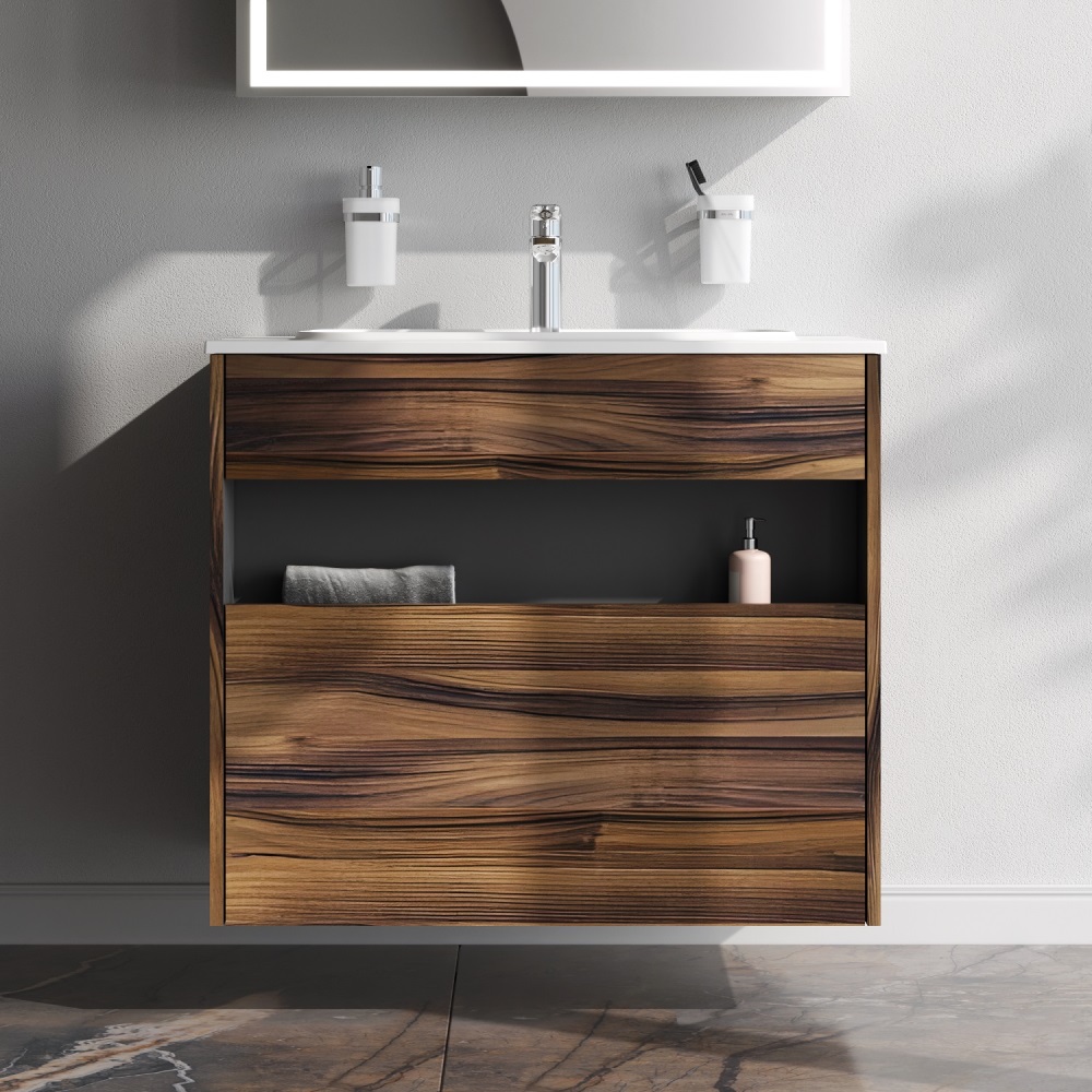 Тумба с умывальником AM.PM Func с нишей и 1 ящиком, 80 см, дуб крафт, универсальная, M8FFUX0801OF