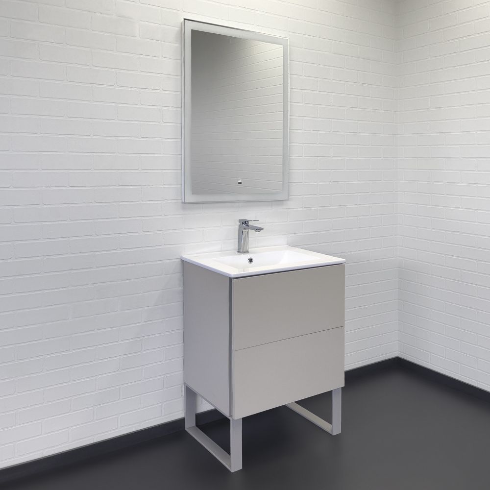 Тумба с умывальником Comforty Бильбао-60Н серый шёлк с раковиной Comforty 60E