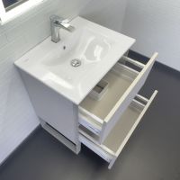 Торговая марка: Comforty Название: Тумба-умывальник Артикул: 00-00019361CF Цвет: серый шёлк Габариты ШхВхГ: 610х850х465 мм Материал фасада и боковых стенок: плита AGT - МДФ облицованный с двух сторон пленкой c эффектом soft touch Комплектация: керамическая прямоугольная раковина Comforty 60E, ножки Напольная тумба-умывальник с двумя ящиками оборудованными направляющими с системой плавного закрывания. Открытие ящиков производится при помощи вертикальных профильных ручек интегрированных в боковые стенки тумбы. Ножки тумбы из металла защищены от воздействия влаги порошковой покраской. Тумбу можно использовать как подвесную, если не использовать ножки. Техническая информация по мебели для ванных комнат Comforty Схема монтажа и подключения коммуникаций