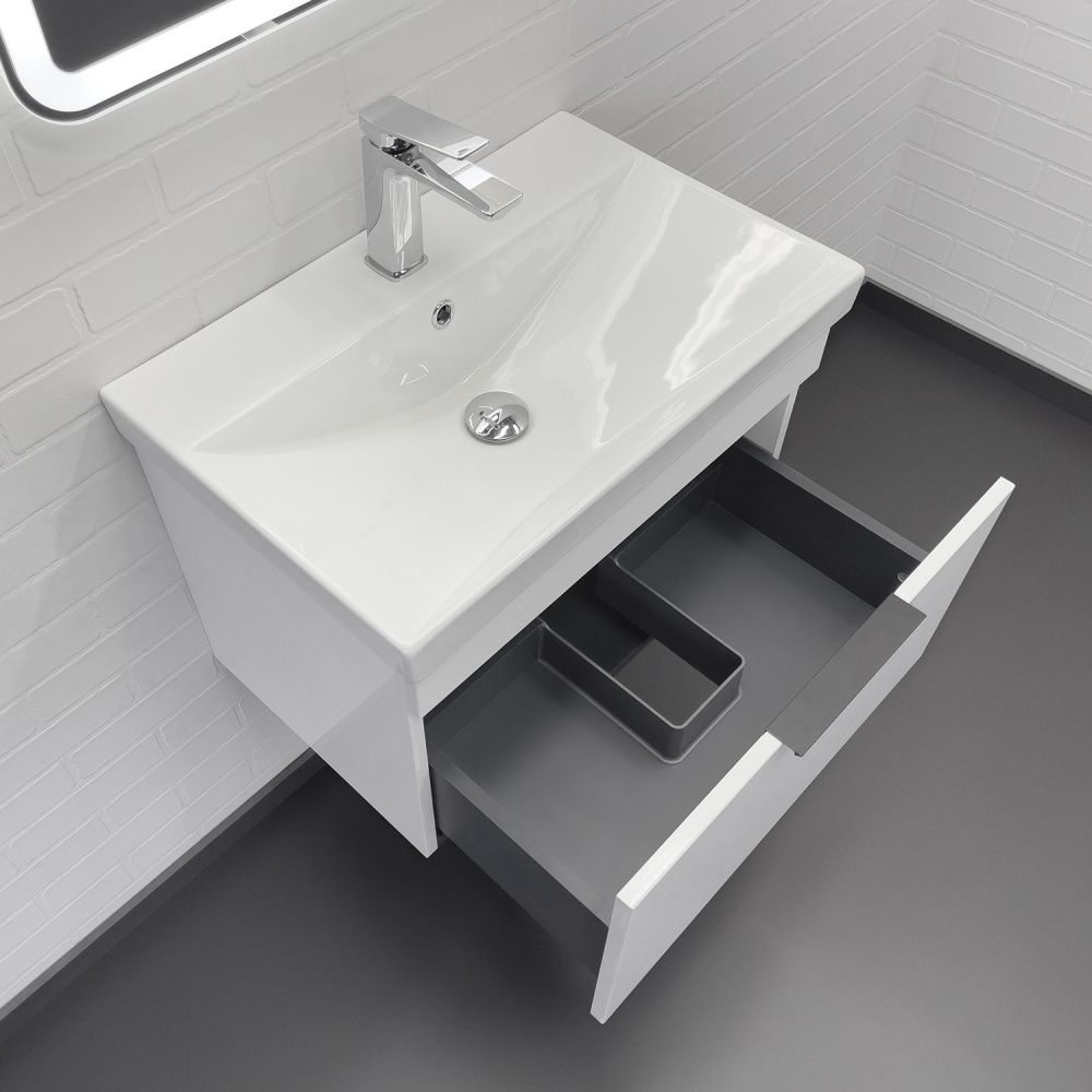 Тумба с умывальником Comforty Кама-60П белый глянец с раковиной Comforty CF19696BX-60