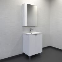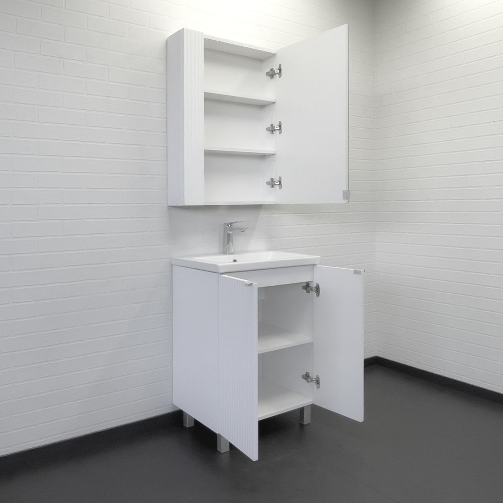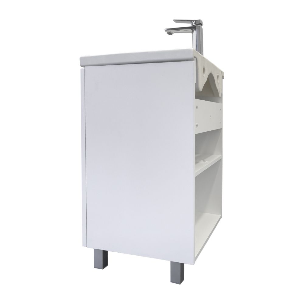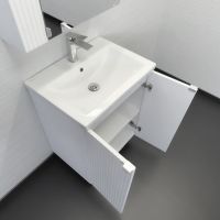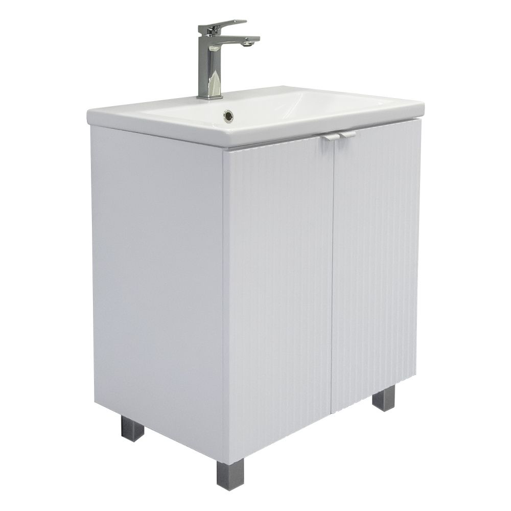 Название: Тумба-умывальник Артикул: 00-00019241CF Варианты цвета корпуса: белый матовый Материал корпуса: ВЛДСП Цвет фасада: белый Материал фасада: МДФ Габариты (ШхВхГ): 600*850*450 мм Комплектация: керамическая раковина Como 60 Напольная тумба-умывальник с двумя распашными створками декорированными вертикальной фрезеровкой. Створки оснащены петлями плавного закрывания. За створками одна полка. В модели применяется плёнка белого цвета с эффектом Soft-Touch. Тумба подготовлена для подключения коммуникаций снизу и сзади. Инструкция для мебели для ванных комнат COMFORTY Схема монтажа и подключения коммуникаций