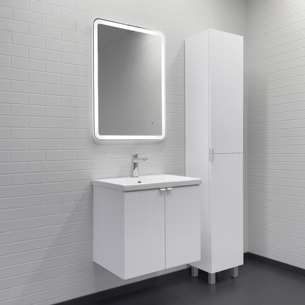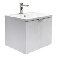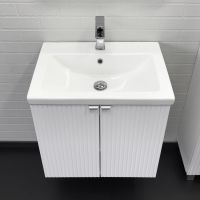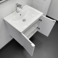Название: Тумба-умывальник Артикул: 00-00019238CF Варианты цвета корпуса: белый Материал корпуса: ВЛДСП Цвет фасада: белый Материал фасада: МДФ Габариты (ШхВхГ): 600*560*450 мм Комплектация: керамическая раковина Como 60 Подвесная тумба-умывальник шириной 60 см с двумя распашными створками декорированными вертикальной фрезеровкой. Створки оснащены петлями плавного закрывания. За створками одна полка. В модели применяется матовая плёнка белого цвета с эффектом Soft-Touch. Инструкция для мебели для ванных комнат COMFORTY Схема монтажа и подключения коммуникаций