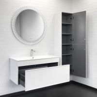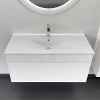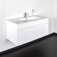 Торговая марка: Comforty Название: Тумба-умывальник Артикул: 00-00017864CF Варианты цвета: белый матовый Материал корпуса: влагостойкое ЛДСП Материал фасада: МДФ Габариты (ШхВхГ): 1010*465*460 мм Комплектация: керамическая раковина Comforty 100E Подвесная тумба с одним большим выкатным ящиком оборудованным направляющими с системой плавного закрывания. Корпус тумбы изготовлены из влагостойкого ЛДСП. Фасад тумбы из МДФ фрезерован кантом по периметру. Подпорная царга фрезерована вертикальным узором. Корпус и фасад тумбы окрашены белой матовой эмалью. Тумба подготовлена для подключения водоснабжения снизу и сзади. Техническая информация по мебели для ванных комнат Comforty Схема монтажа и подключения коммуникаций