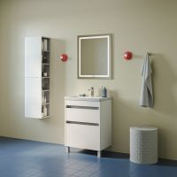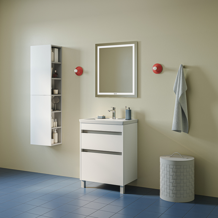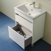 Компактная, но вместительная напольная тумба для ванной Zodiac X с умывальником и двумя увеличенными выдвижными ящиками – новая версия коллекции-бестселлера Zodiac, которую мы обновили согласно актуальным требованиям дизайна и функционала. Универсальный стиль идеально впишется в любой интерьер. Увеличено место хранения: полезная высота нижнего ящика – 236 мм, верхнего – 103 мм. Материал фасада – МДФ с покрытием ПВХ-плёнкой, материал боковин – влагостойкий ЛДСП. Такое качественное исполнение обеспечит долгий срок службы мебели во влажном помещении ванной (при соблюдении рекомендаций по уходу). Обновлённый керамический умывальник увеличенных габаритов с большой и глубокой чашей. Удобен для гигиенических и хозяйственных нужд. Ящики открываются захватом за фасад и благодаря механизму плавного доведения закрываются плавно и бесшумно. Фурнитура рассчитана на 30 000 открываний, что составляет более 10 лет исправной работы. Ящики полностью выдвигаются, что делает их очень удобными в использовании. Гарантия на мебель IDDIS® – 3 года, на умывальник – 25 лет. (с) Авторский текст, август 2025 г.