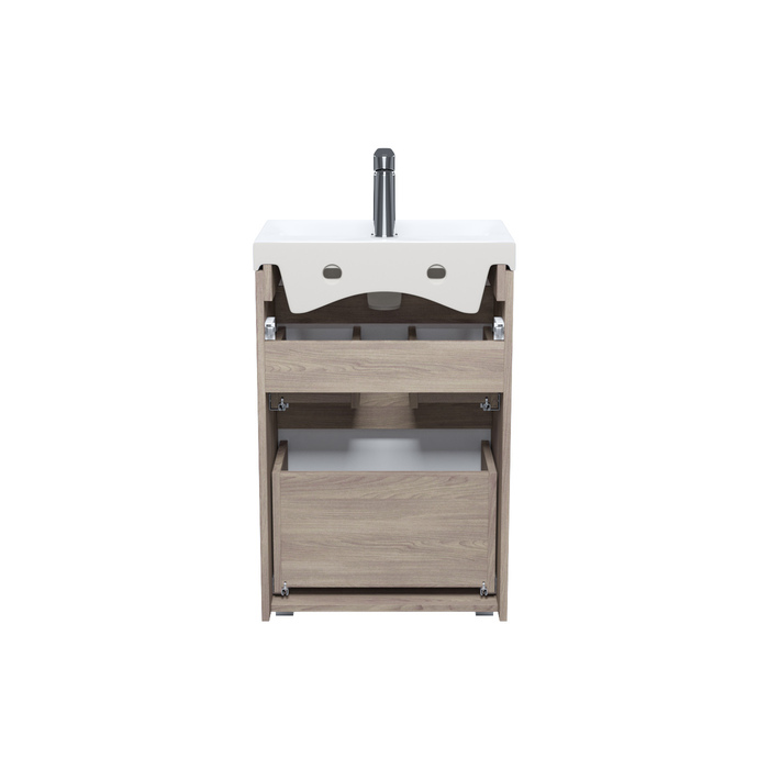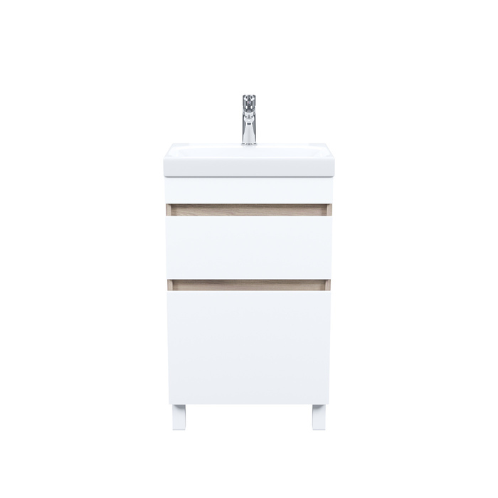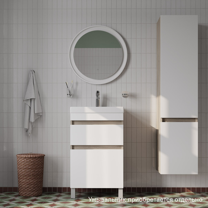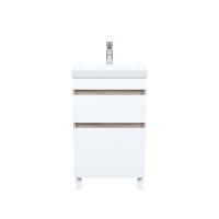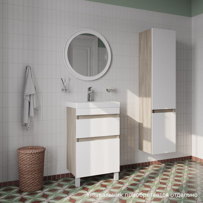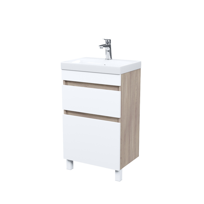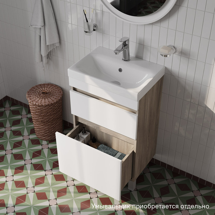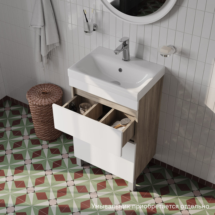 Тумба с умывальником напольная с ящиками, 50 см, белая/под дерево, Zodiac, IDDIS, ZOD5ABFi95K