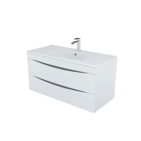 Тумба с умывальником для ванной комнаты, подвесная. Размеры тумбы без умывальника: 455х1003х500 мм (ДхШхВ). Размеры умывальника: 465х1000х175 мм (ДхШхВ). Фасад МДФ 19 мм в эмали (белая), фрезеровка. Корпус влагостойкий ЛДСП 16 мм в эмали. Интегрированные ручки. Два выдвижных ящика с механизмом плавного доведения. Пластиковый ограничитель под сифон в верхнем ящике. Перекатной организатор в нижнем ящике. Навесы усиленные с планкой. Упаковка: картон, пленка, пенопластовые уголки.