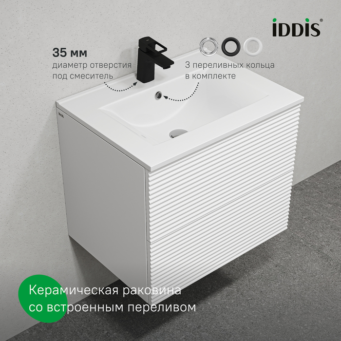 Тумба с умывальником, подвесная, 60 см, белый, Bild, IDDIS, BIL60W0i95K