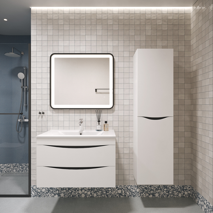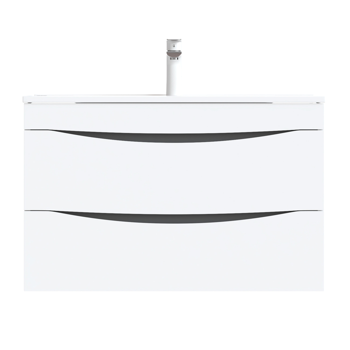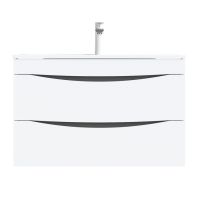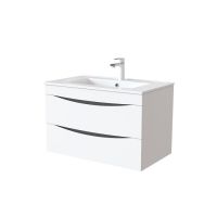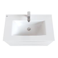 Тумба с умывальником для ванной комнаты, подвесная. Размеры тумбы без умывальника: 455х799х500 мм (ДхШхВ). Размеры умывальника: 465х800х175 мм (ДхШхВ). Фасад МДФ 19 мм в эмали (белая), фрезеровка. Корпус влагостойкий ЛДСП 16 мм в эмали. Интегрированные ручки. Два выдвижных ящика с механизмом плавного доведения. Ограничитель под сифон в верхнем ящике. Перекатной организатор в нижнем ящике. Навесы усиленные с планкой. Упаковка: картон, пленка, пенопластовые уголки.