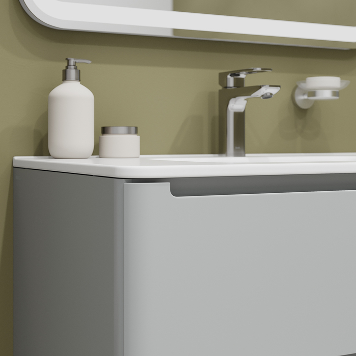Подвесная тумба с плоским умывальником Edifice в стильном светло-сером цвете – воплощение современного минимализма. Мягкие линии корпуса в сочетании с удобными интегрированными ручками выглядят свежо и актуально. Смотрится аккуратно, легко и не усложняет процесс уборки в ванной благодаря подвесной конструкции. • В комплекте умывальник (арт. 0108000i28) из качественного фарфора. Он отличается высокой прочностью и прост в уходе: не задерживает загрязнения и неприятные запахи, надолго сохраняя первозданную белизну. • Два выдвижных ящика закрываются плавно и бесшумно благодаря высококачественным скрытым направляющим с доводчиками немецкого производства. • Надежные крепления рассчитаны на большой вес и позволяют равномерно распределять нагрузку. • Фурнитура рассчитана на 30 000 открываний, что составляет более 10 лет исправной работы. Гарантия на мебель IDDIS® – 3 года. (с) Авторский текст, август 2023 г.