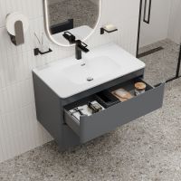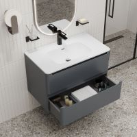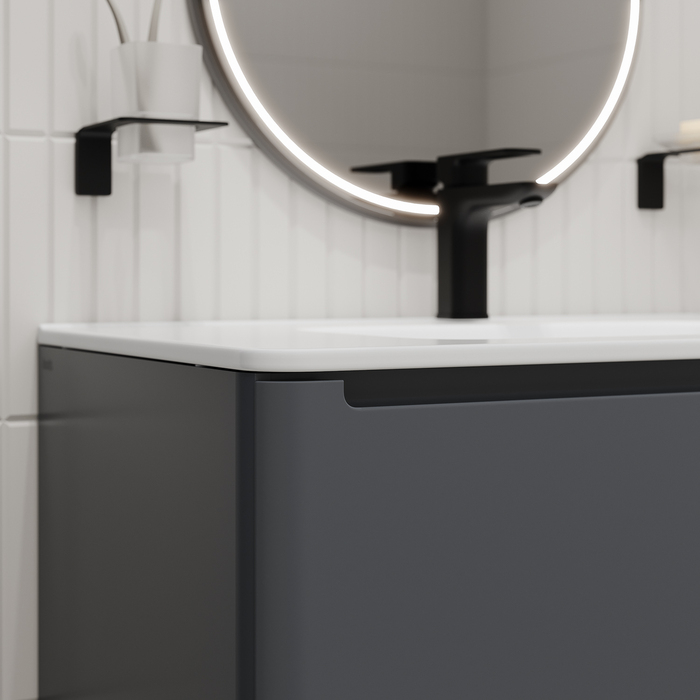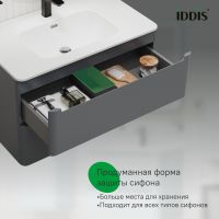 Подвесная тумба с плоским умывальником Edifice стильного темно-серого цвета – воплощение современного минимализма. Мягкие линии корпуса в сочетании с удобными интегрированными ручками выглядят свежо и актуально. Смотрится аккуратно, легко и не усложняет процесс уборки в ванной благодаря подвесной конструкции. • В комплекте умывальник (арт. 0108000i28) из качественного фарфора. Он отличается высокой прочностью и прост в уходе: не задерживает загрязнения и неприятные запахи, надолго сохраняя первозданную белизну. • Два выдвижных ящика закрываются плавно и бесшумно благодаря высококачественным скрытым направляющим с доводчиками немецкого производства. • Надежные крепления рассчитаны на большой вес и позволяют равномерно распределять нагрузку. • Фурнитура рассчитана на 30 000 открываний, что составляет более 10 лет исправной работы. Гарантия на мебель IDDIS® – 3 года. (с) Авторский текст, август 2023 г.