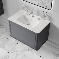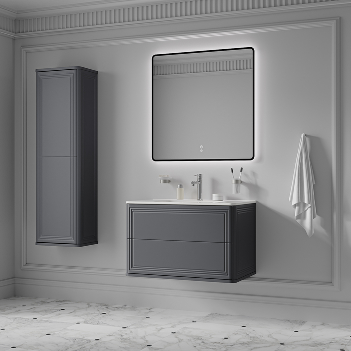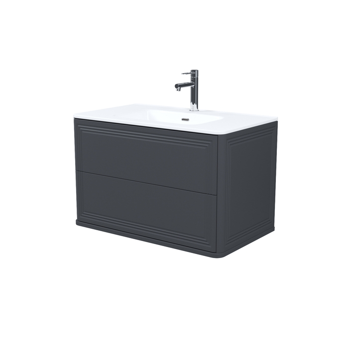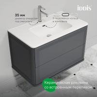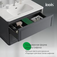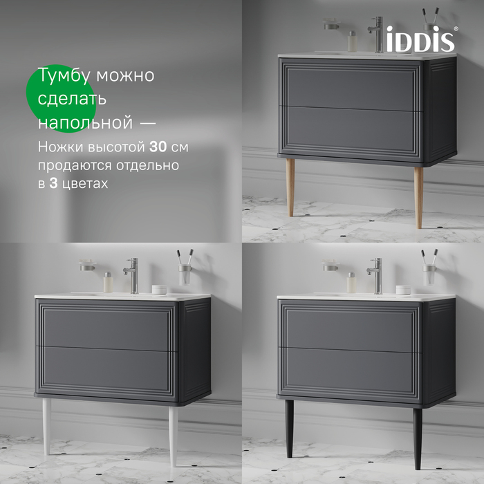 Вместительная подвесная тумба Oxford Neo с умывальником и выдвижными ящиками в элегантном стиле нео-классика с изящной фрезеровкой на фасадах и торцах. Идеально дополнит современные и классические интерьеры и станет настоящим украшением ванной. При желании тумбу можно сделать напольной – ножки высотой 30 см продаются отдельно в трёх цветах (белый, чёрный и светлый бук). Материал фасадов и боковин – МДФ с покрытием тёмно-серой матовой эмалью (RAL7015). Продумано для использования в помещениях с высокой влажностью и сохранит первоначальный вид мебели надолго (при должном уходе). Керамический умывальник с высоким бортом и большой вместительной чашей в комплекте. Удобен для гигиенических и хозяйственных нужд. Два ящика с шариковыми направляющими скрытого монтажа Hettich. Фурнитура рассчитана на 30 000 открываний – это более 10 лет исправной работы. Современный механизм открытия Push-to-Open – ящики открываются нажатием на фасад. В комплекте регулируемые навесы Hettich для удобного монтажа тумбы. Сифон приобретается отдельно. Гарантия на мебель IDDIS® – 3 года, на умывальник – 5 лет. (с) Авторский текст, август 2025 г.