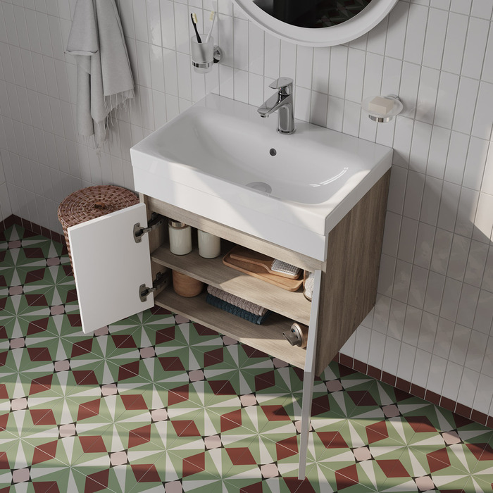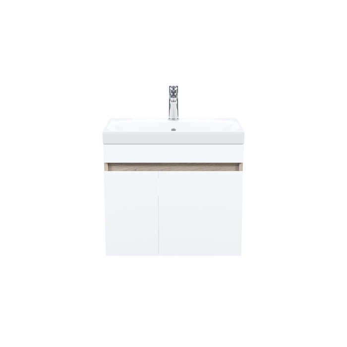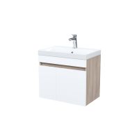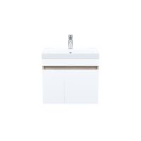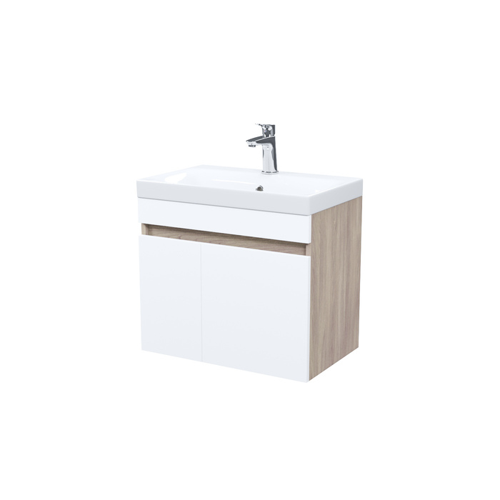 Тумба с умывальником подвесная с дверцами, 60 см, белая/под дерево, Zodiac, IDDIS, ZOD6AD0i95K