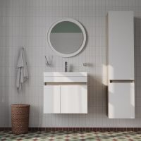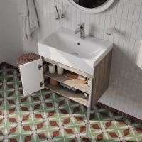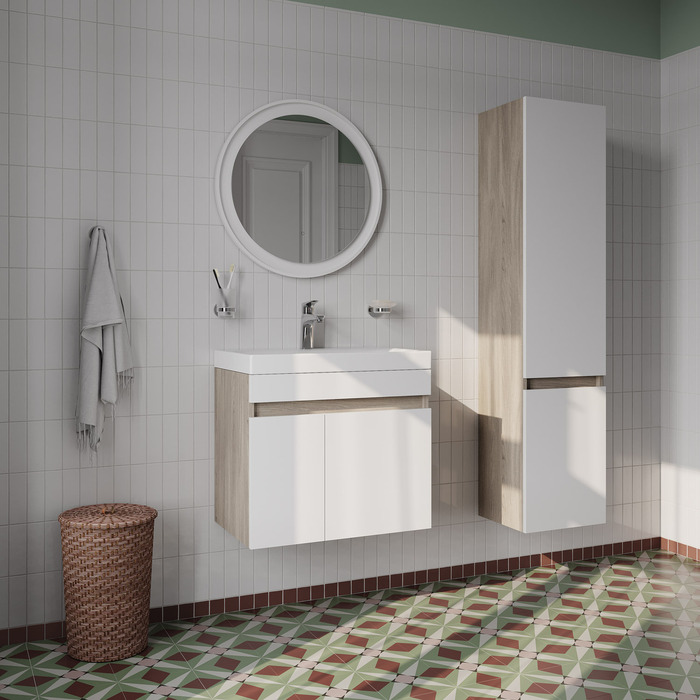 Компактная подвесная тумба для ванной Zodiac с ящиками – удобство и практичность в сочетании с лаконичным скандинавским дизайном. • Корпус из влагостойкой ЛДСП в уютном цвете «ясень-шимо», фасад – из влагостойкой ЛДСП, покрыт несколькими слоями белоснежной матовой эмали. Такое качественное исполнение обеспечит долгий срок службы мебели во влажном помещении ванной (при соблюдении рекомендаций по уходу). • Керамический умывальник с высоким бортом и большой вместительной чашей в комплекте. Удобен для гигиенических и хозяйственных нужд. • Подвесная конструкция тумбы делает ее воздушной и упрощает процесс уборки. • Дверцы скрывают две вместительные полки. Дверцы имеют интегрированные ручки и механизм плавного доведения и закрываются плавно и бесшумно. Фурнитура рассчитана на 30 000 открываний, что составляет более 10 лет исправной работы. • Сифон в комплекте, за счет чего тумба полностью готова к установке. Гарантия на мебель для ванной IDDIS® – 3 года. (с) Авторский текст, апрель 2023 г.