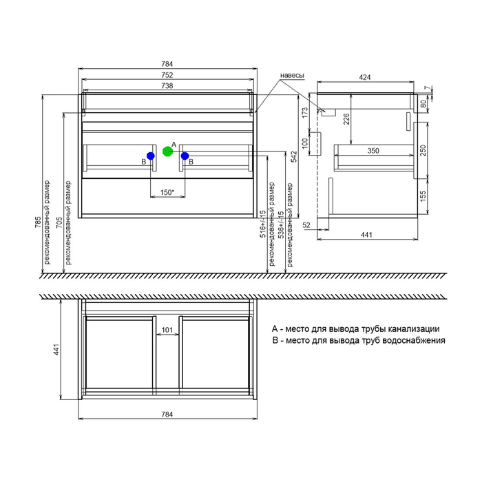 Тумба с умывальником, подвесная, с нишей, 80 см, белый, Zodiac X, IDDIS, ZDX80WNi95K