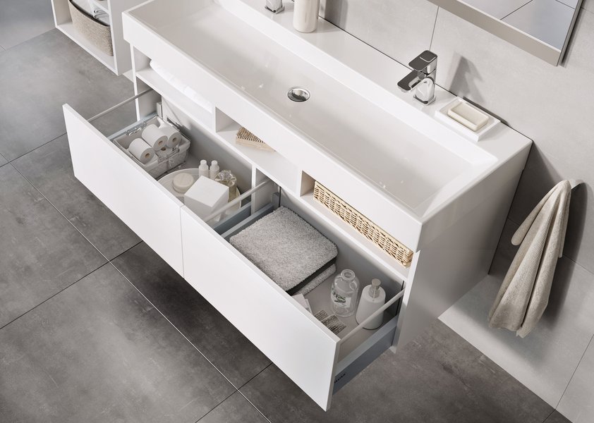 • Практичные умывальники, предоставляющие больше свободного пространства в ванной комнате. Горизонтальное расположение умывальника вдоль стены экономит пространство ванной комнаты и предоставляет полочку для принадлежностей по всей длине умывальника.