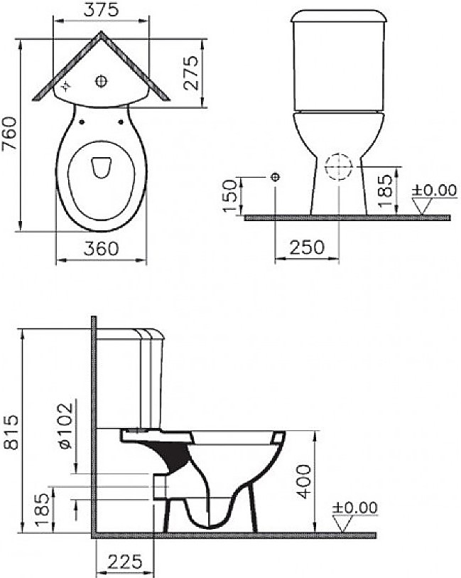 Унитаз-компакт напольный угловой VitrA Arkitekt с сиденьем микролифт белый 9754B003-7201