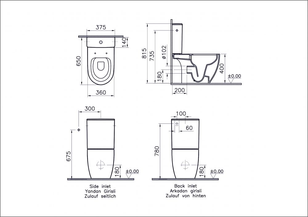 Унитаз-компакт напольный VitrA Sento с сиденьем микролифт белый санитарный фарфор антибактериальное покрытие Hygiene