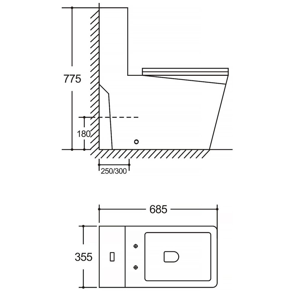 Унитаз-моноблок Azario RAYO 355х685х775 безободковый,с системой смыва Rimless, с быстросъемным сиденьем микролифт (AZ-6385)