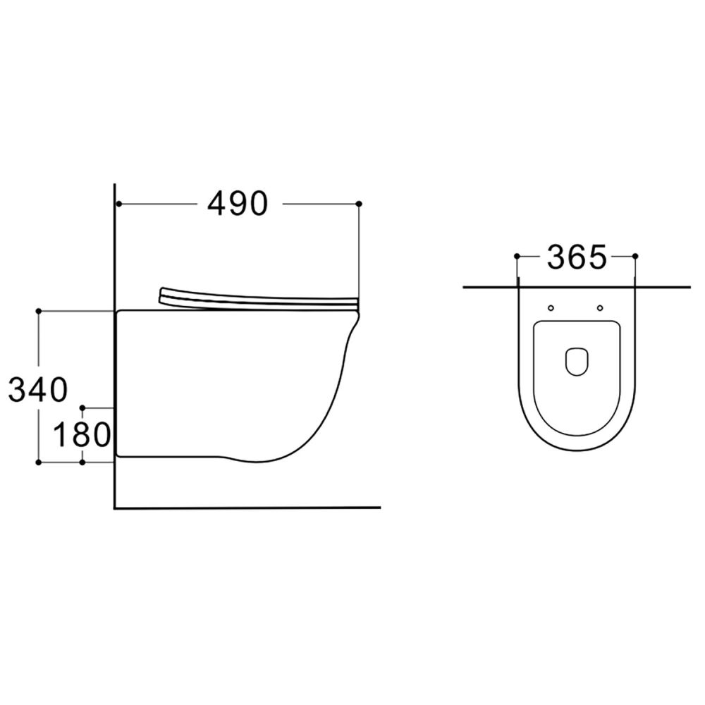 Унитаз подвесной Azario LISTA 490х365х340 безободковый, смыв скрытое торнадо, AZ-1177T