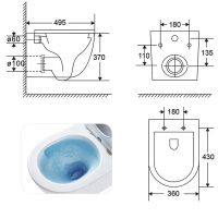 Унитаз подвесной Azario TERSO 495x360x370 безободковый, слив скрытое торнадо AZ-092E-UQ3