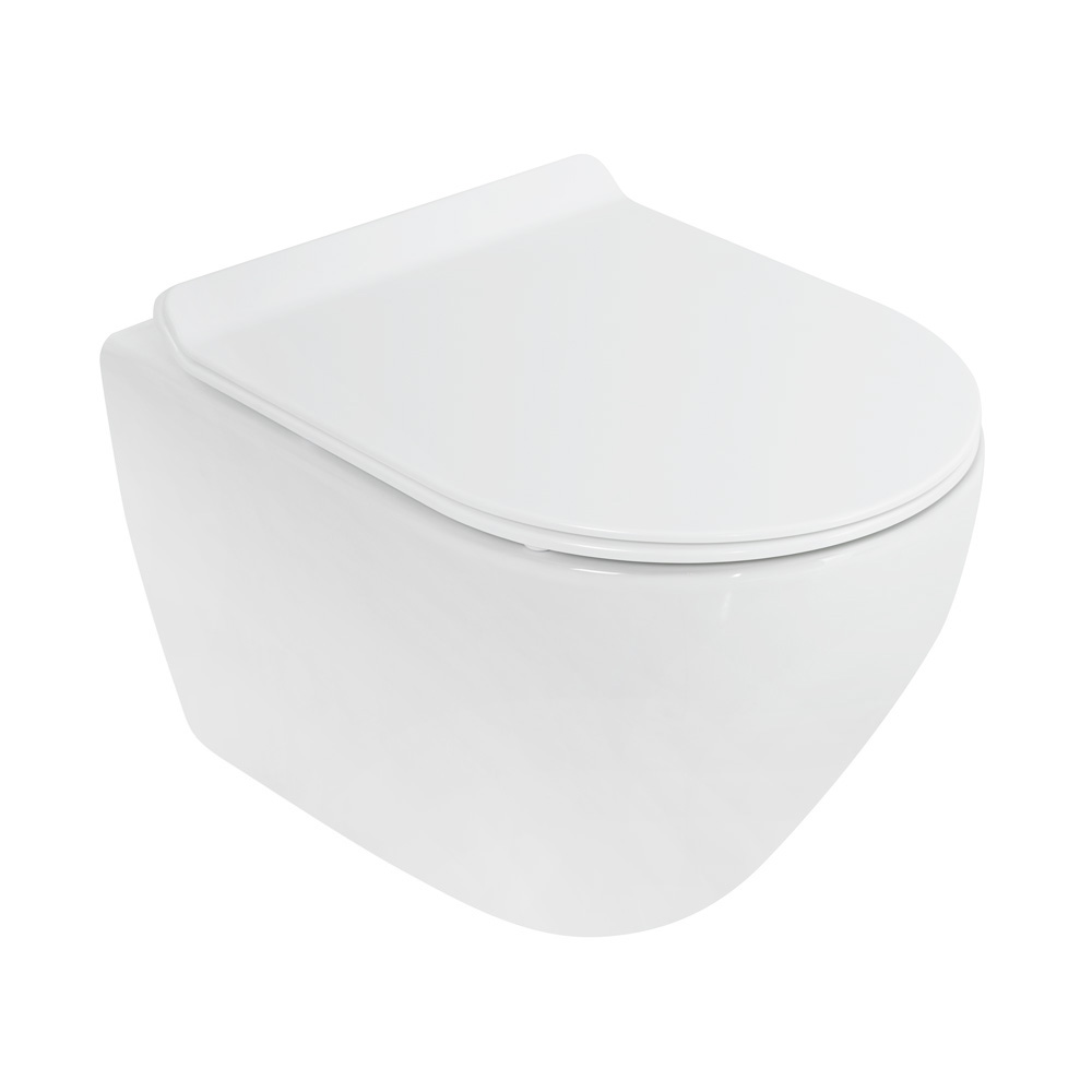 Унитаз подвесной безободковый в комплекте с крышкой сиденьем микролифт CEZARES STYLUS CZR-513-TH-R/CZR-2011-SC, цвет белый