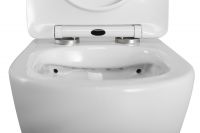 Подвесные унитазы выглядят миниатюрнее и легче, что идеально соответствует требованиям современного стиля. Малые габариты изделий позволяют существенно экономить пространство в санузлах небольших размеров. Скрытый монтаж компактной системы инсталляции улучшает эстетический вид и поможет реализовать любую дизайнерскую идею ванной комнаты. Подвесной монтаж унитаза даст возможность красиво и удобно разместить ершик и гигиенический душ. Отсутствие ножки унитаза позволяет выложить цельный узор из плитки на полу, что значительно меняет восприятие интерьера. Создает дополнительные возможности укладки кабельной системы обогрева пола. Подвесные унитазы с инсталляционной системой выдерживают нагрузку до 400 кг, что гарантирует надежность всей конструкции. Безободковая конструкция чаши и идеально гладкая поверхность придают унитазу эстетичный вид и облегчают уход. •Продукция произведена по международным стандартам EN •Безободковая конструкция с мощным эффективным смывом •Пониженный уровень шума при смыве •Конструкция чаши и направление потока смыва полностью исключают выплескивание воды •Стекловидная глазурь •Сиденье в комплекте с унитазом •Быстросъёмная крышка-сиденье обеспечивает легкий и удобный уход, оснащена механизмом плавного опускания •Скрытая крепежная система •Легкость сборки и монтажа •Гигиеничность и удобный уход •Гарантия: 25 лет на керамику, на крышку-сиденье 1 год