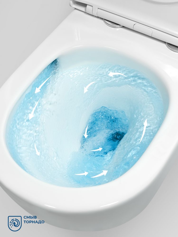 🌪TORNADO - самая передовая и технологичная система смыва, благодаря мощному спиралевидному потоку, который образуется при выбросе воды из отверстия, размещенного в верхней части чаши унитаза. Это создает эффективный водоворот, который полностью омывает всю внутреннюю поверхность унитаза. Система смыва TORNADO не только гарантирует чистоту, но и гармонично соединяет дизайн с функциональностью.