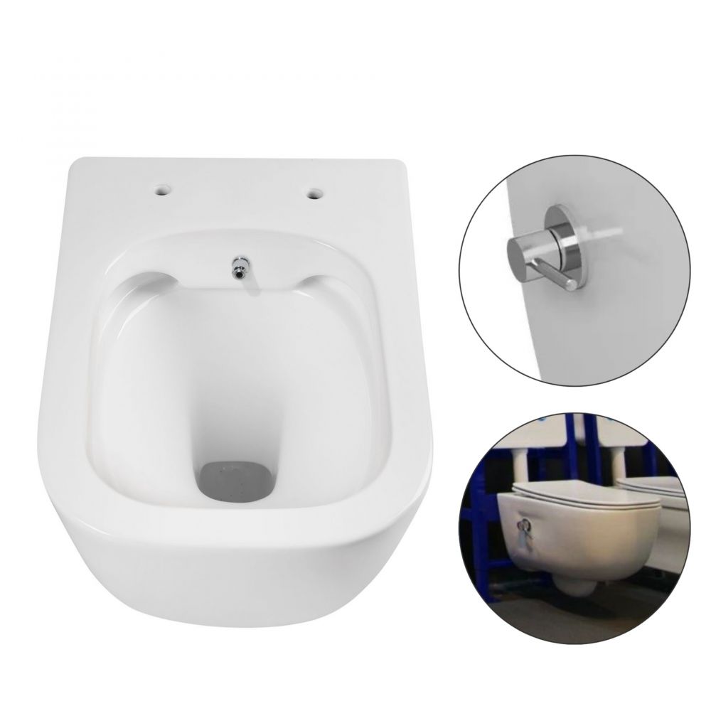 Унитаз Aquatek ДИВА изготовлен из 100% санитарного фарфора, который сохраняет безупречную белизну на протяжении всего срока службы и достаточно легко моется. Безободковая конструкция чаши обеспечивает гигиеничность, отсутствие скрытых участков и простоту в уходе. Направление смывного потока воды с двух сторон и по центру унитаза позволяет полностью омывать чашу и исключает выплескивание воды. Ультратонкое сиденье из дюропласта легко снимается для уборки одним нажатием кнопки. Механизм Soft Close обеспечивает плавное и бесшумное закрытие крышки унитаза, без лишних контактов и усилий. Встроенный смеситель в подвесном унитазе объединяет функции обычного унитаза и биде, экономя пространство в ванной и обеспечивая удобство гигиенических процедур. Встроенная бидетка оснащена поворотным изливом. Температура воды регулируется однорычажной поворотной ручкой смесителя. Особенно актуально для помещений, где его размеры не позволяют установить гигиенический душ или отдельное биде.