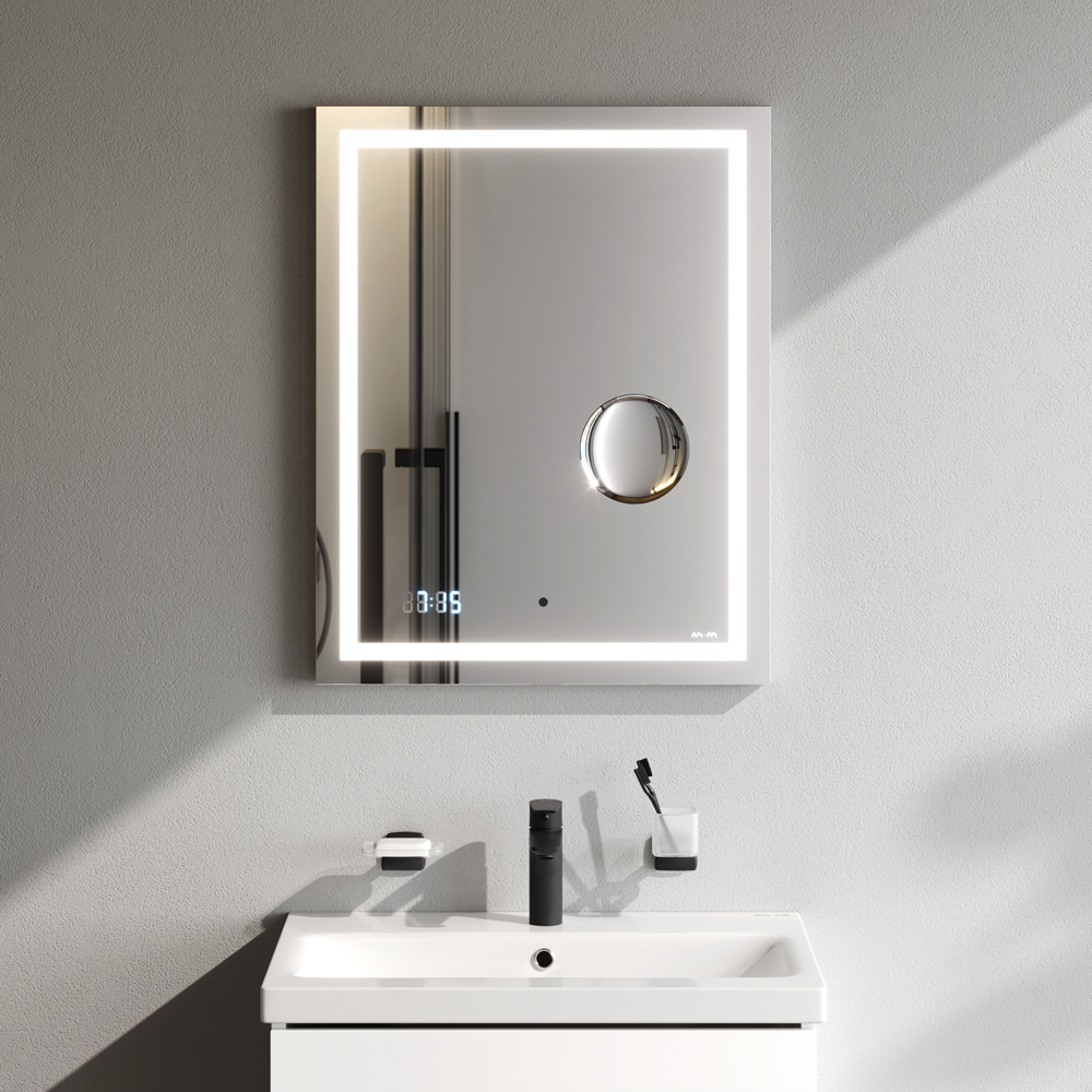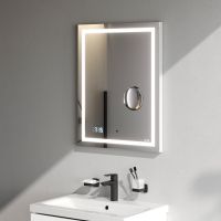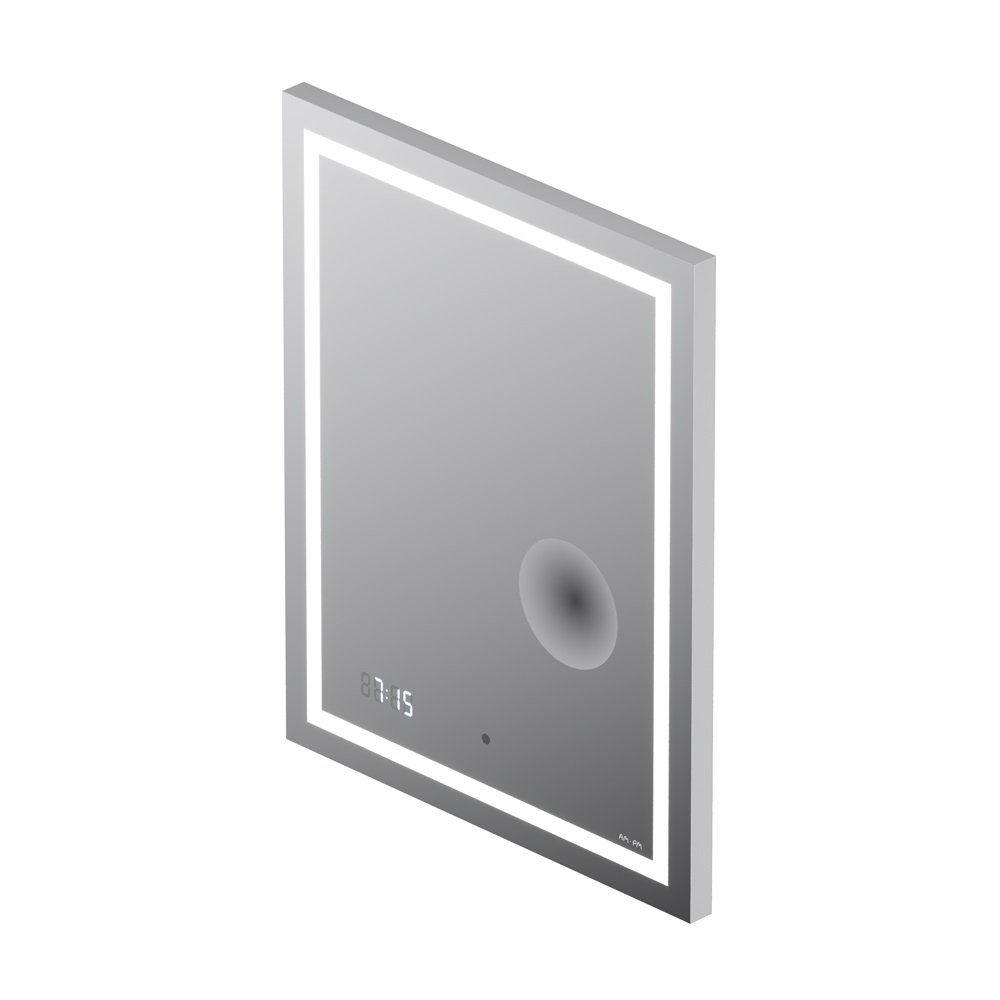 Скрытый механический выключатель сохраняет эстетическую целостность дизайна зеркала, а также гарантирует отсутствие отпечатков пальцев на зеркальном полотне. Зеркальное полотно премиального качества производства Бельгии. Гарантия 3 года.