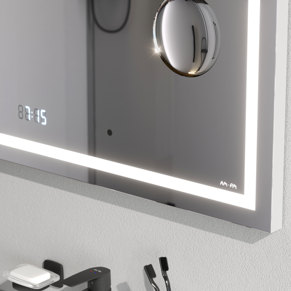 Скрытый механический выключатель сохраняет эстетическую целостность дизайна зеркала, а также гарантирует отсутствие отпечатков пальцев на зеркальном полотне. Зеркальное полотно премиального качества производства Бельгии. Гарантия 3 года.