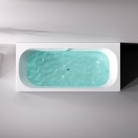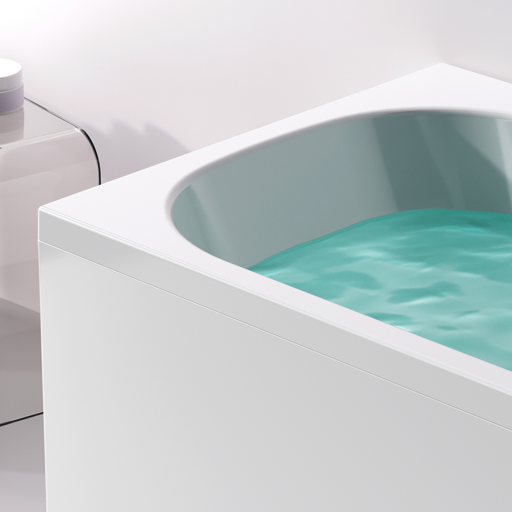 Впервые в доступном сегменте ванна с центральным сливом-переливом (признак премиального сегмента). Большое внутреннее пространство. Широкий функциональный борт-полка шириной 81 мм для хранения принадлежностей.