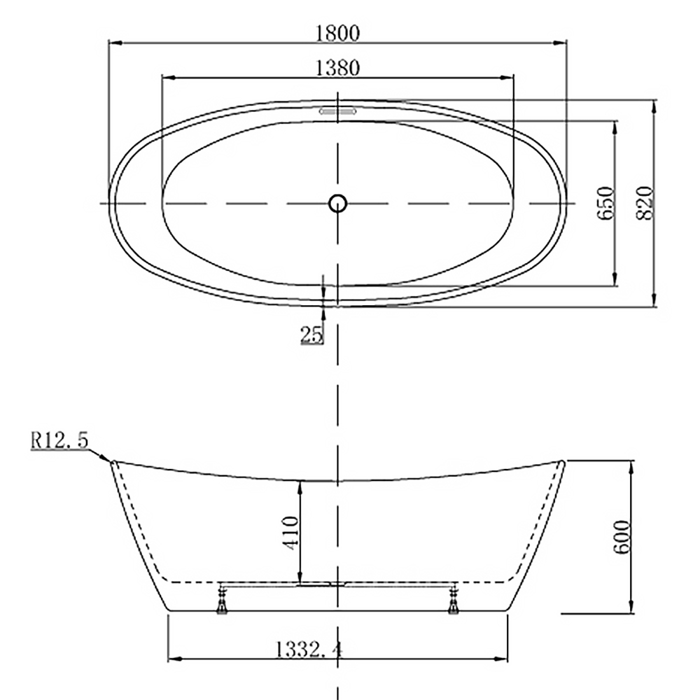 Ванна акриловая Azario EASTON 180x820x600 отдельностоящая AZ-1337B