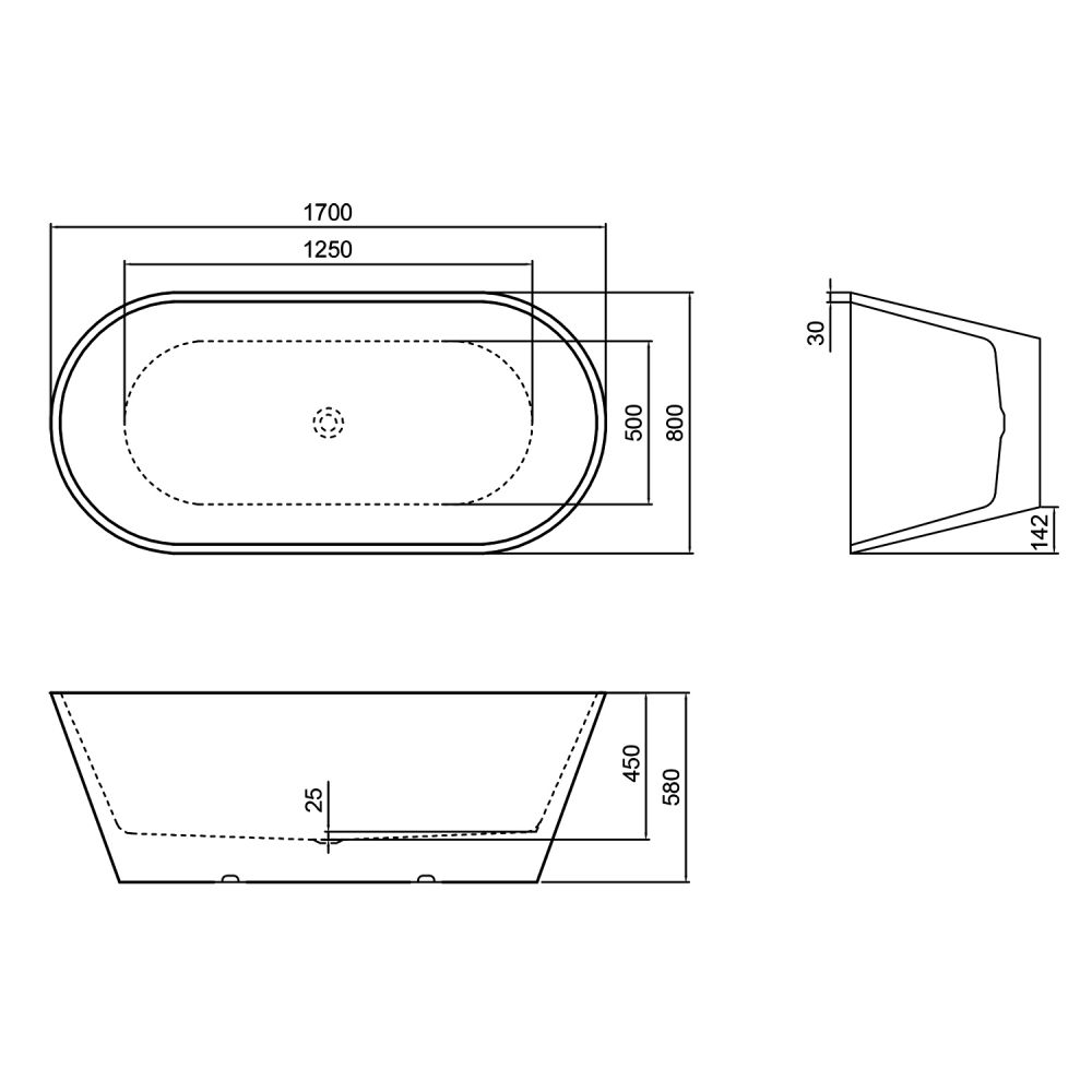Ванна акриловая Azario RICH 170x800 отдельностоящая, цвет белый AZ-6605-17080